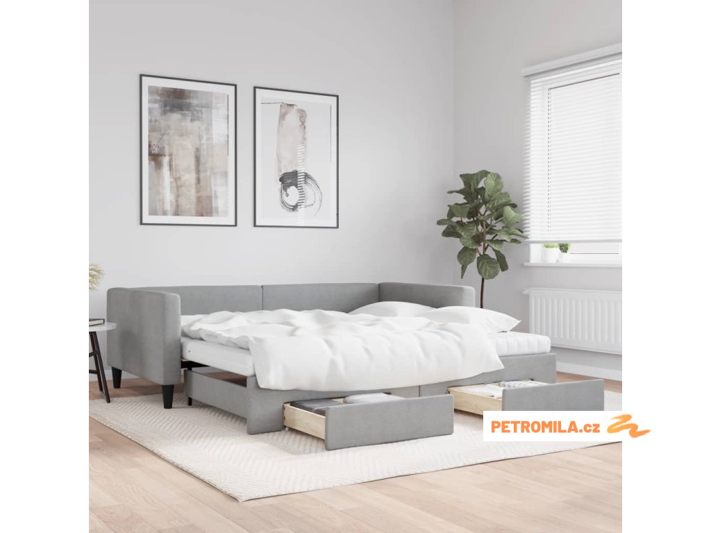 Válenda s přistýlkou a zásuvkami světle šedá 100x200 cm textil