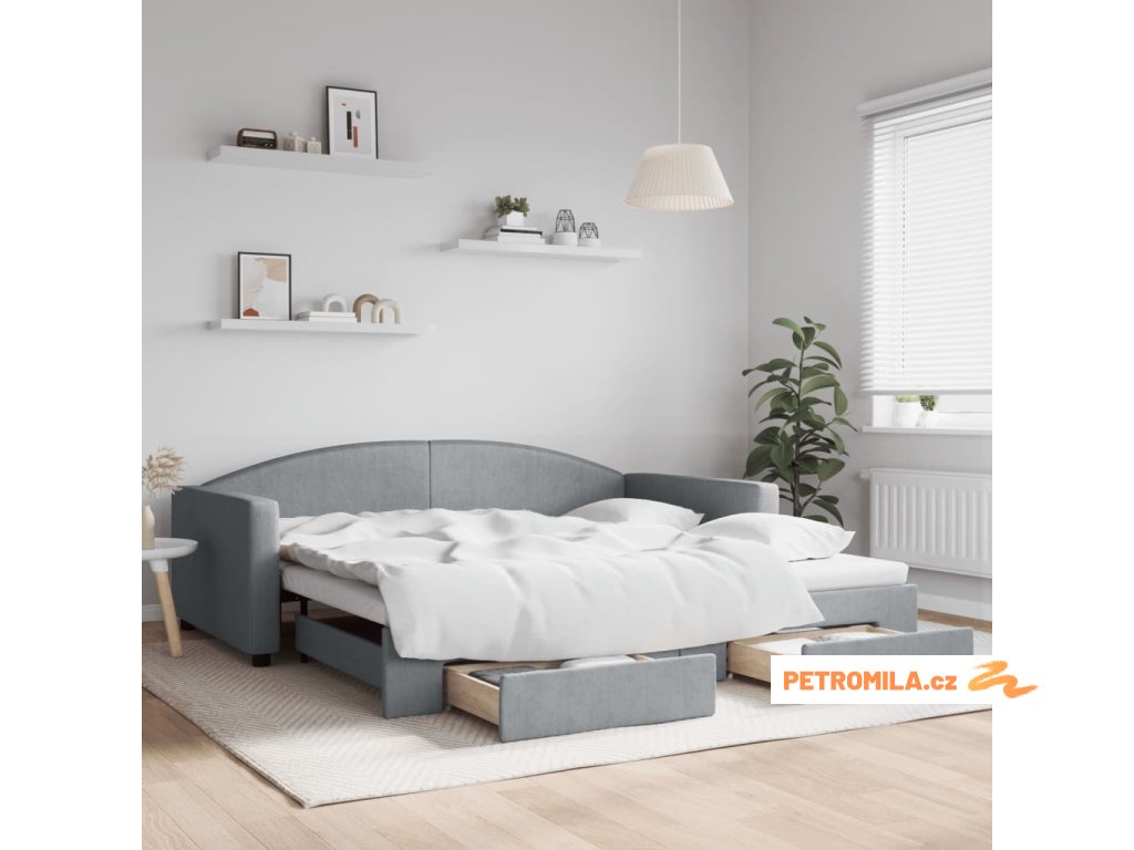 Válenda s přistýlkou a zásuvkami světle šedá 100x200 cm textil