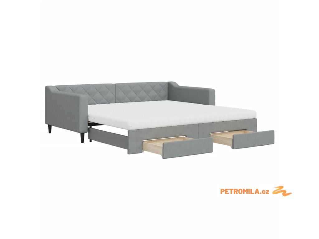 Válenda s přistýlkou a zásuvkami světle šedá 100x200 cm textil