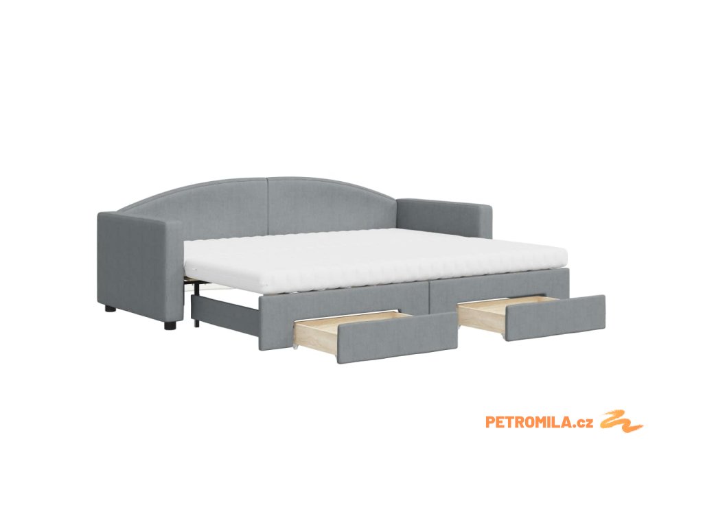 Válenda s přistýlkou a zásuvkami světle šedá 80 x 200 cm textil