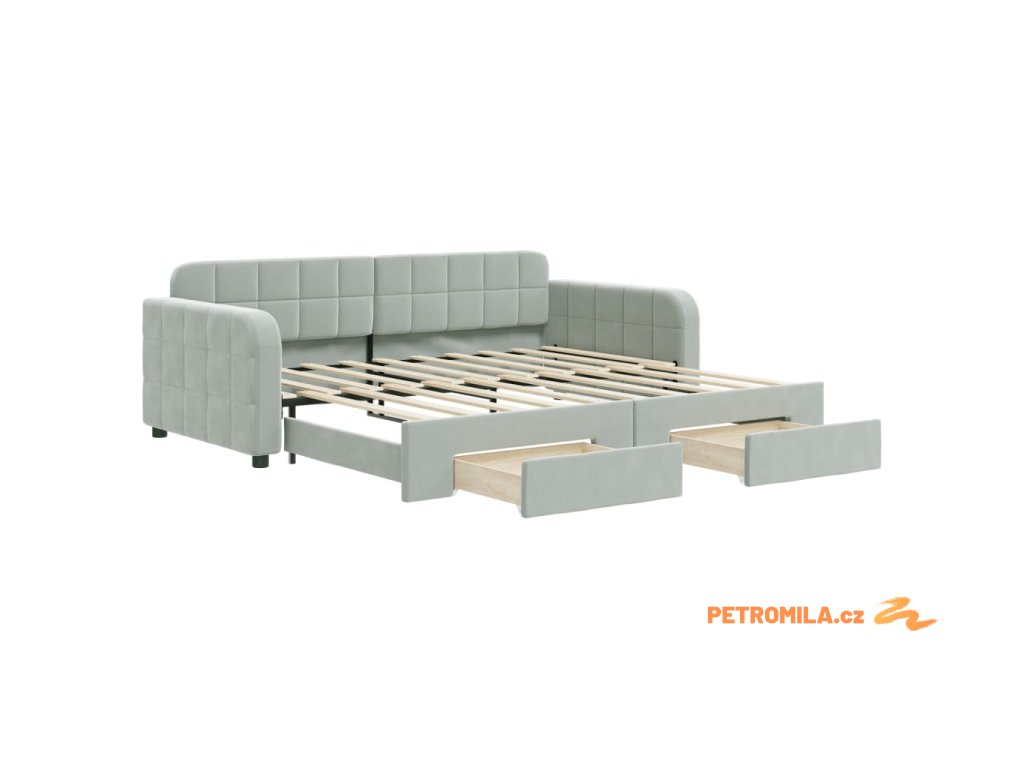Válenda s přistýlkou a zásuvkami světle šedá 90 x 190 cm samet