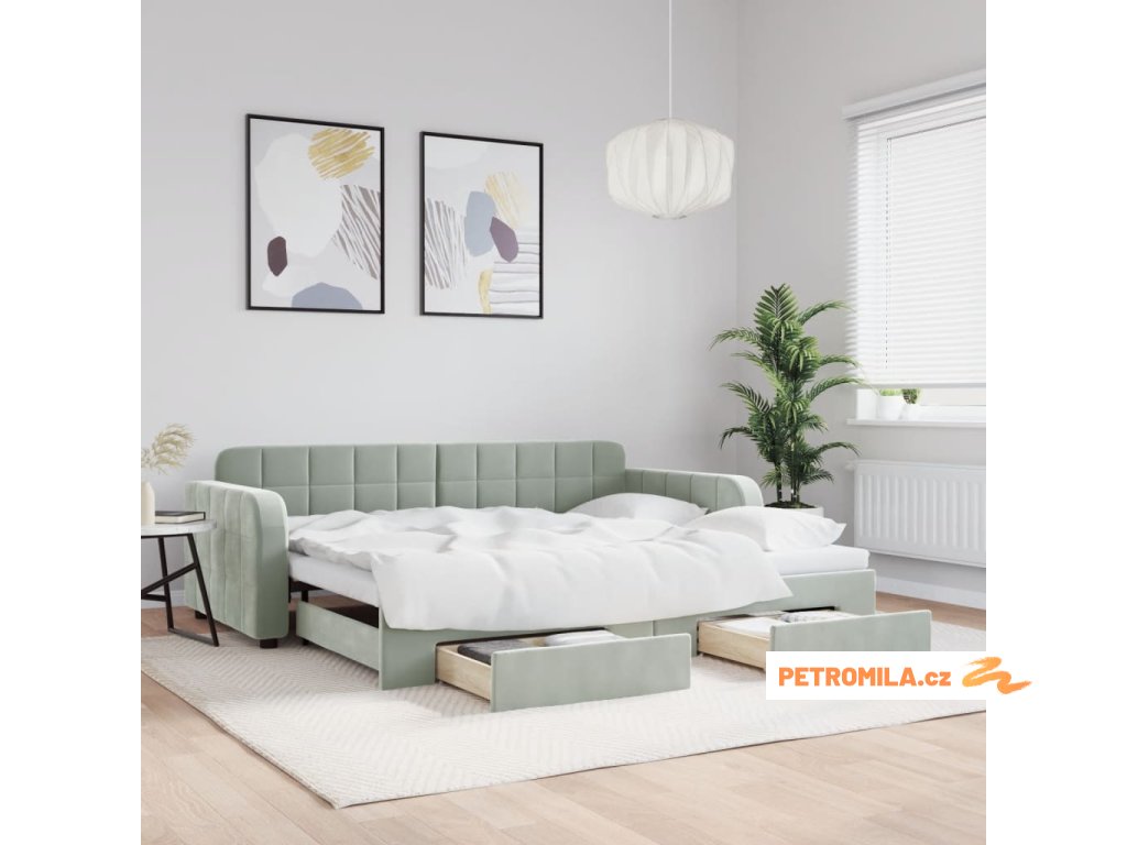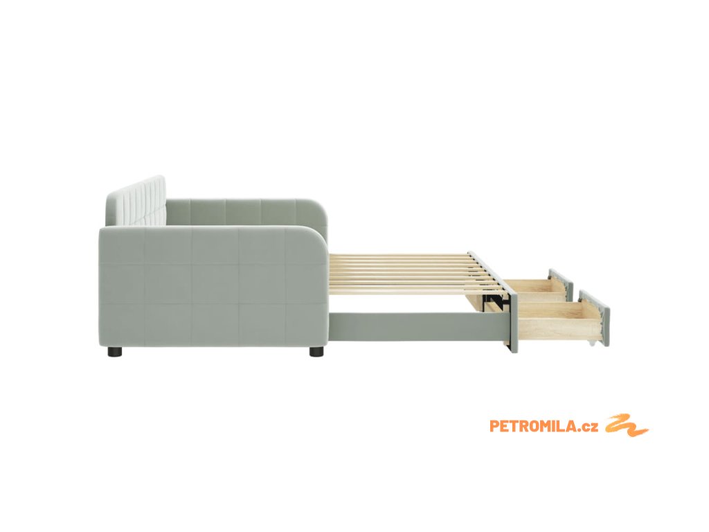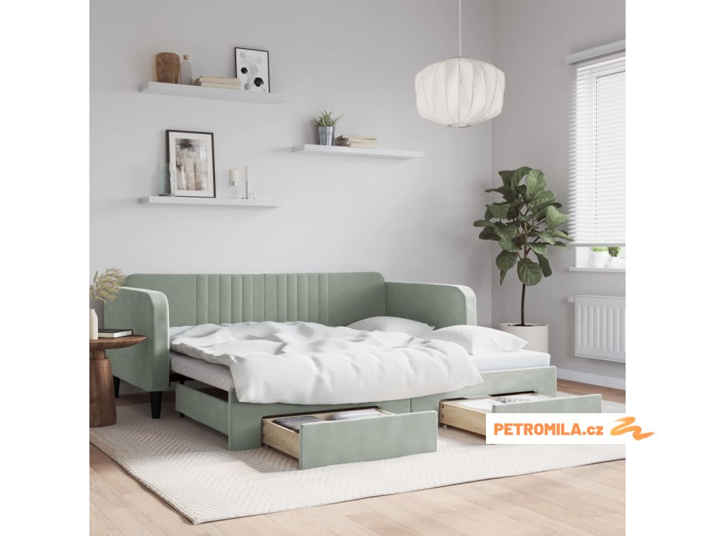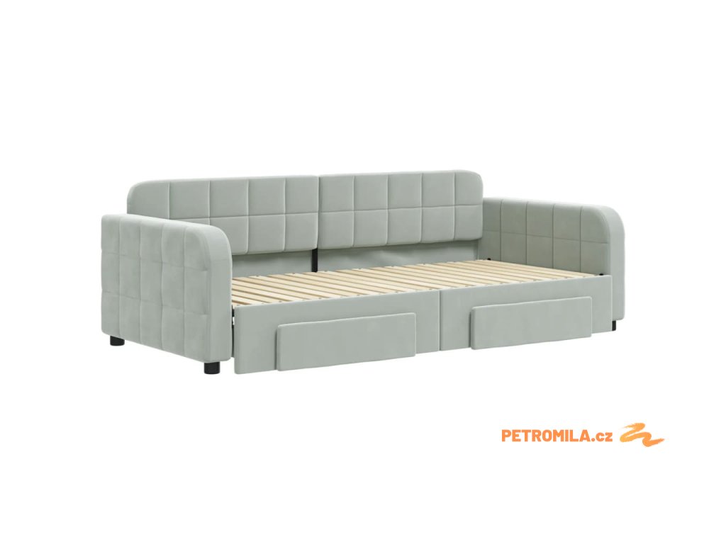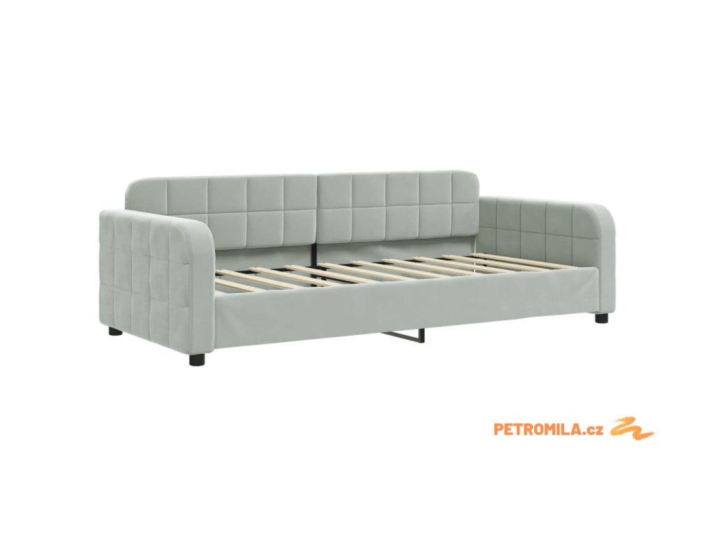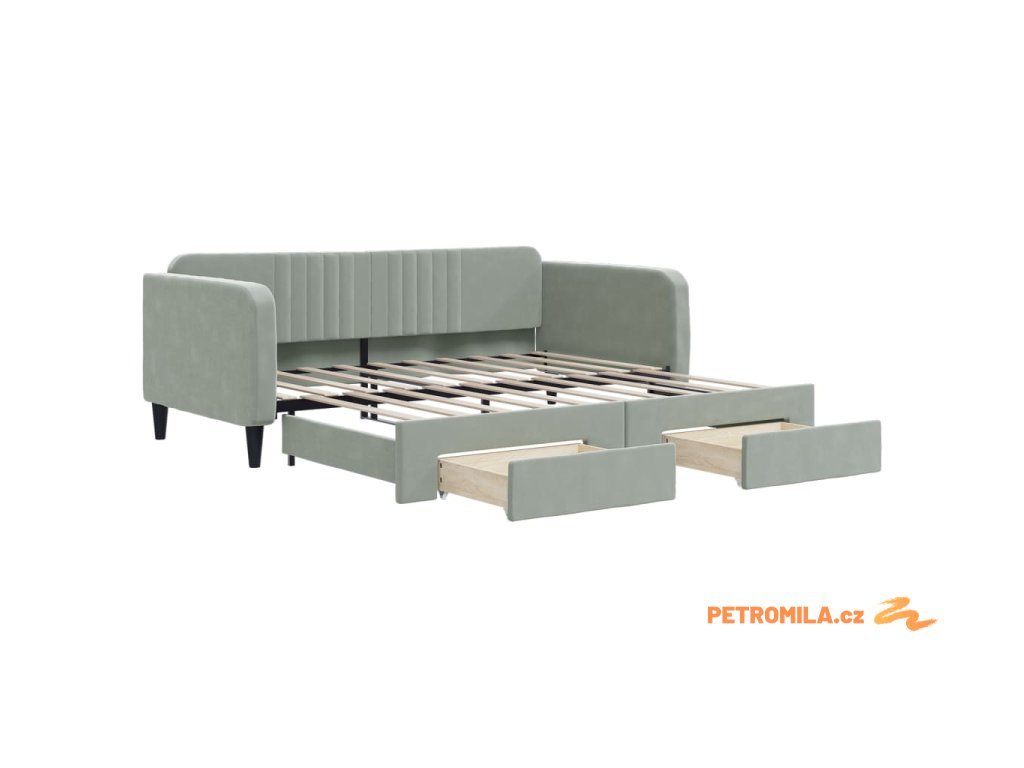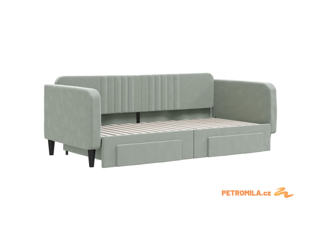 Válenda s přistýlkou a zásuvkami světle šedá 90 x 190 cm samet