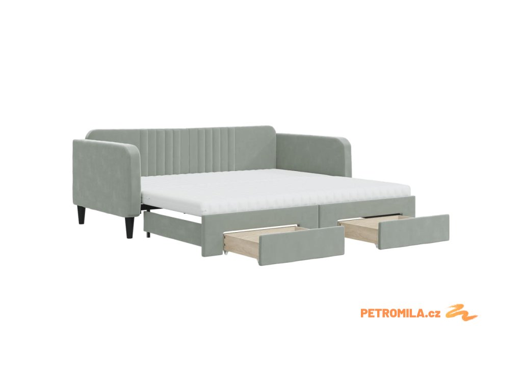 Válenda s přistýlkou a zásuvkami světle šedá 90 x 190 cm samet