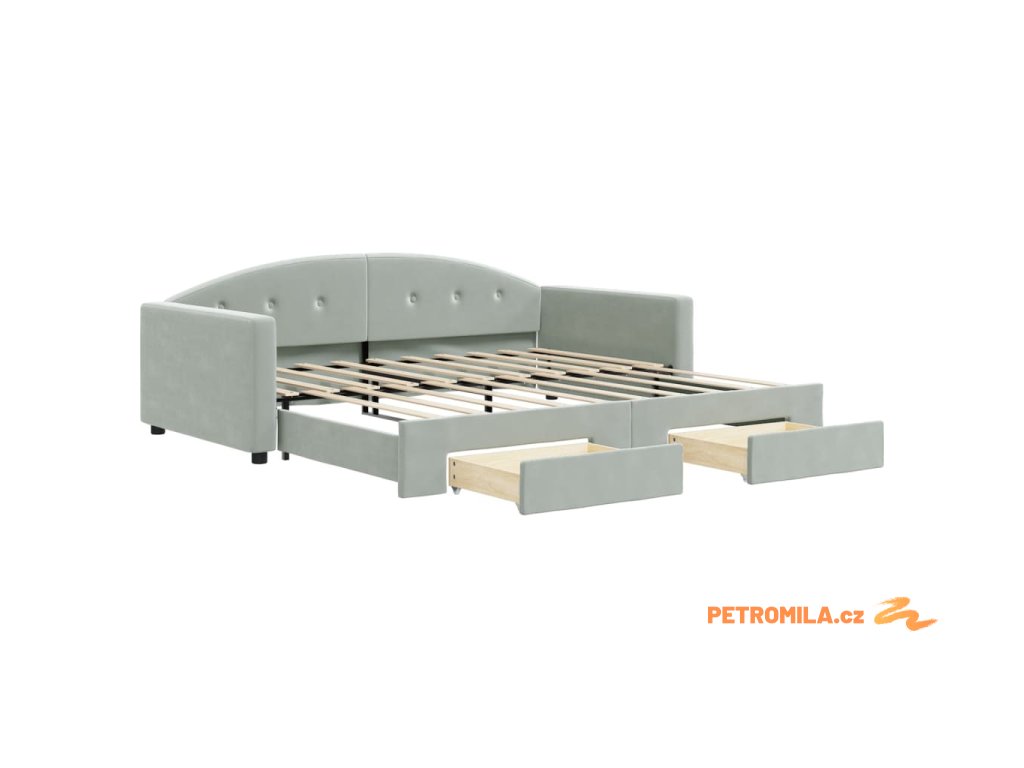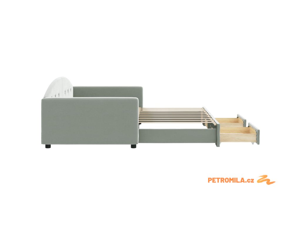 Válenda s přistýlkou a zásuvkami světle šedá 90 x 190 cm samet
