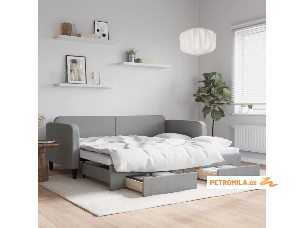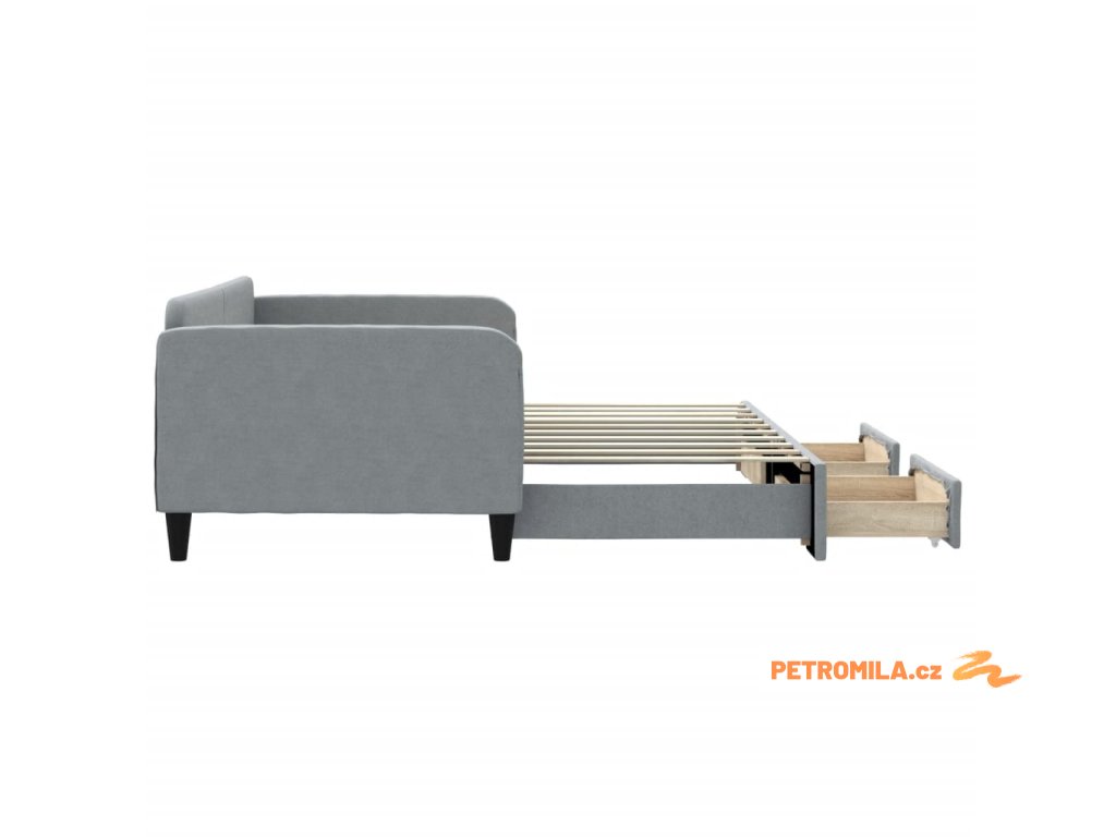 Válenda s přistýlkou a zásuvkami světle šedá 90 x 190 cm textil