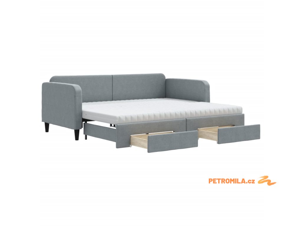 Válenda s přistýlkou a zásuvkami světle šedá 90 x 190 cm textil