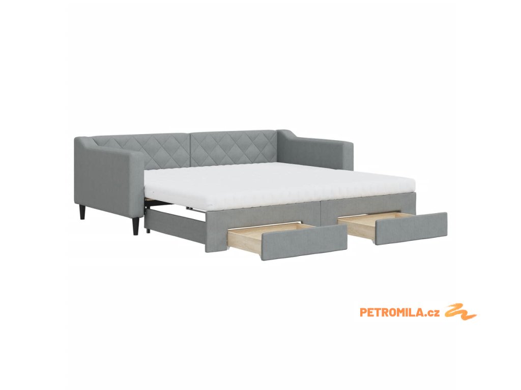 Válenda s přistýlkou a zásuvkami světle šedá 90 x 190 cm textil