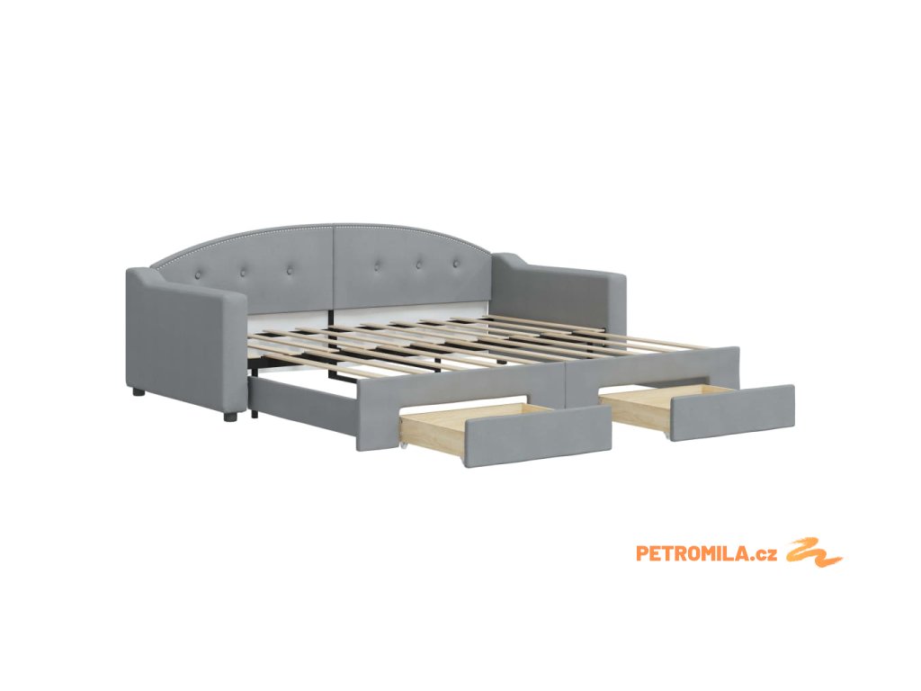Válenda s přistýlkou a zásuvkami světle šedá 90 x 190 cm textil