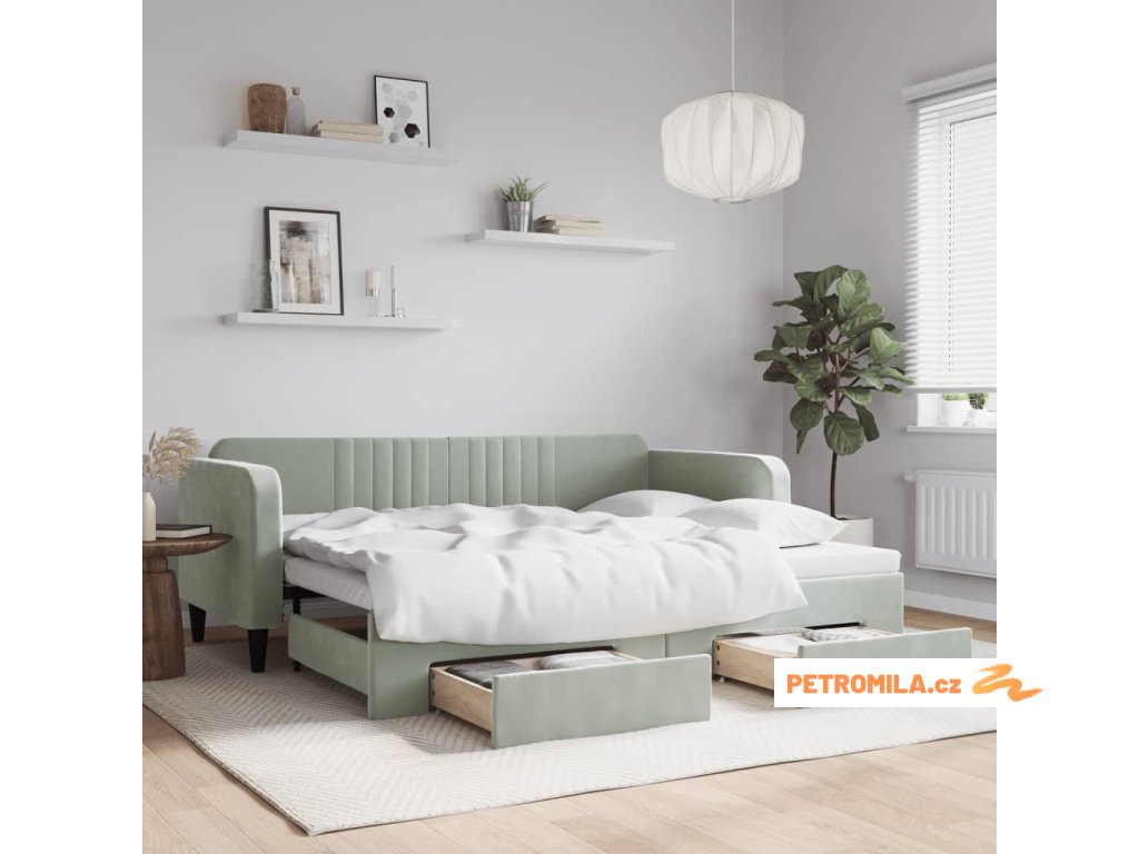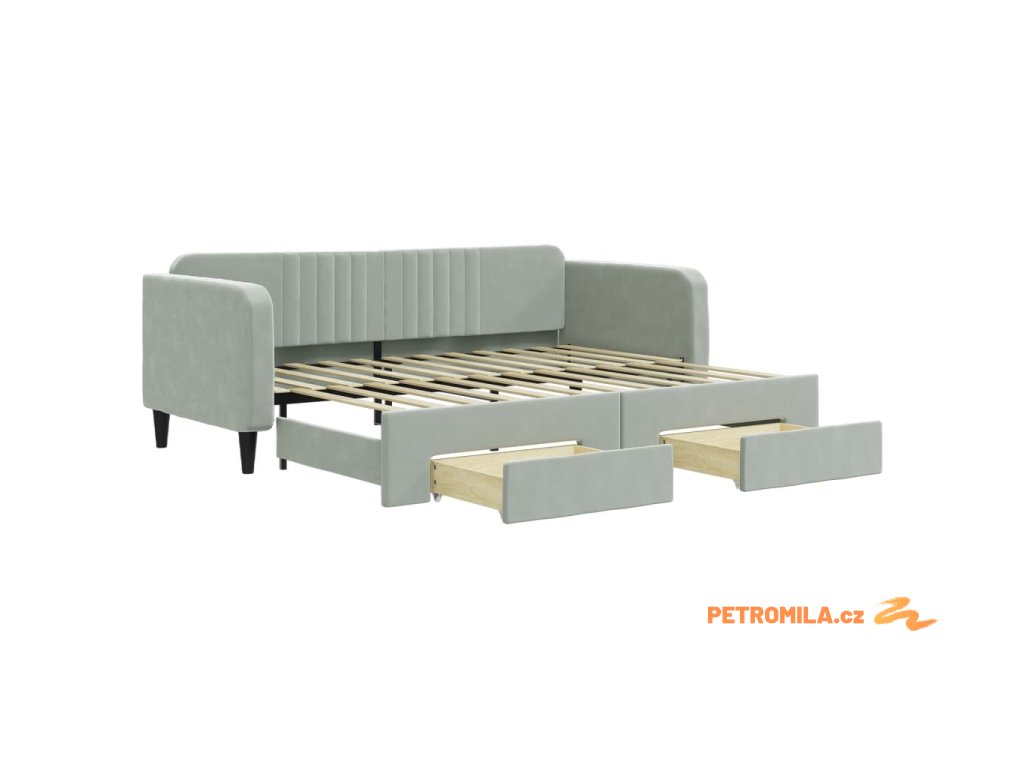 Válenda s přistýlkou a zásuvkami světle šedá 90 x 200 cm samet