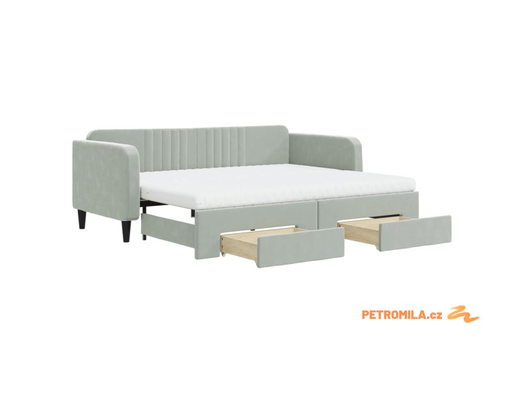 Válenda s přistýlkou a zásuvkami světle šedá 90 x 200 cm samet