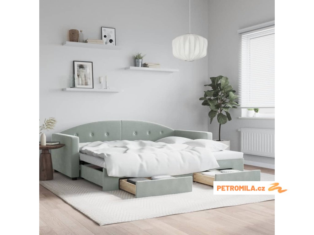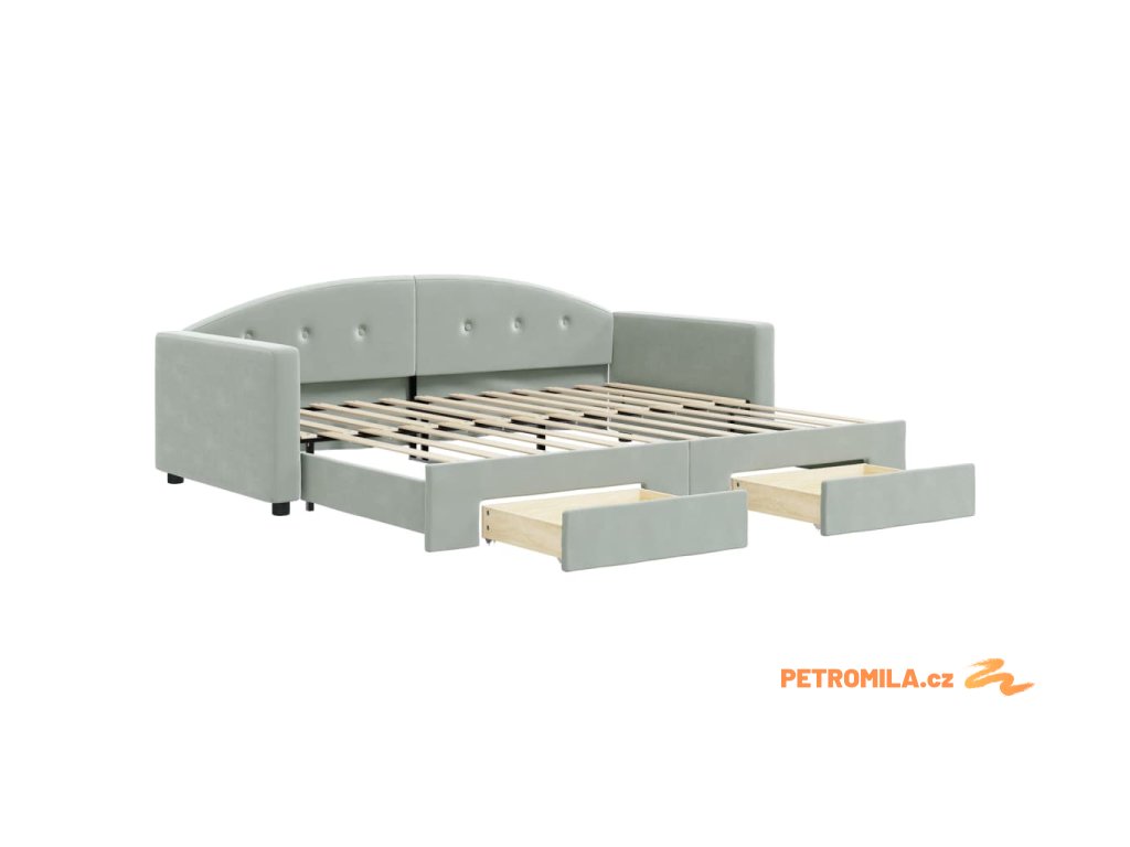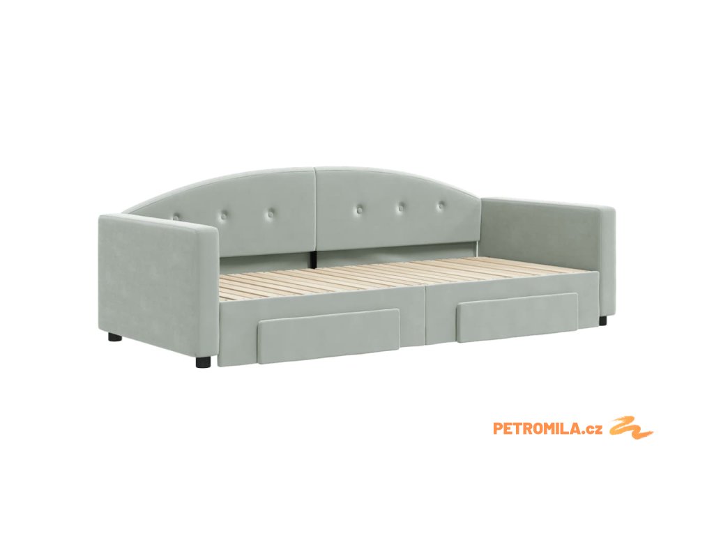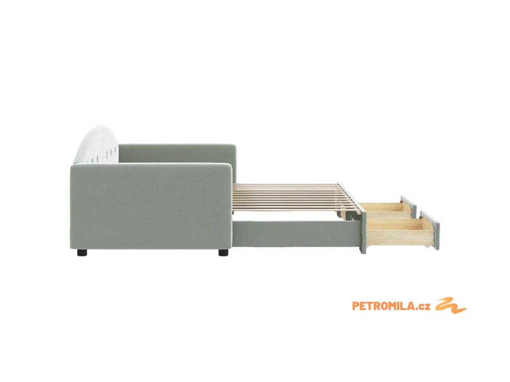 Válenda s přistýlkou a zásuvkami světle šedá 90 x 200 cm samet