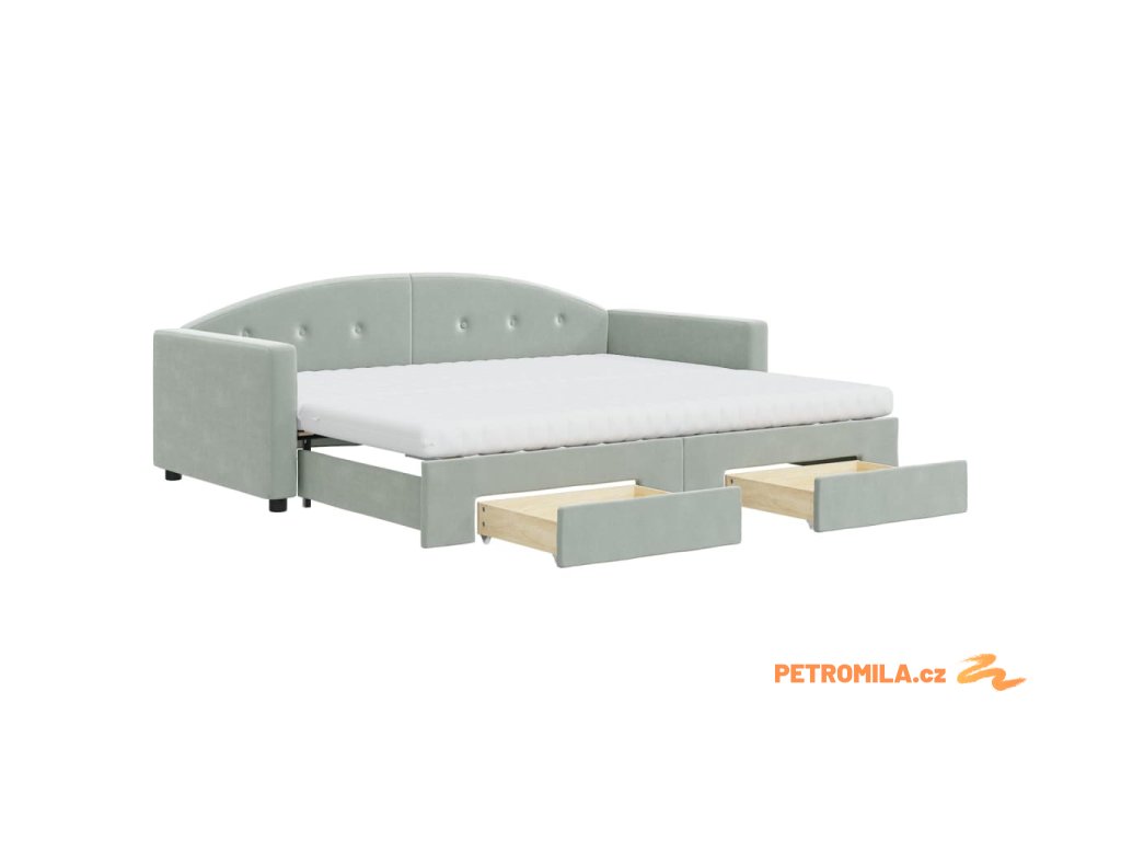 Válenda s přistýlkou a zásuvkami světle šedá 90 x 200 cm samet