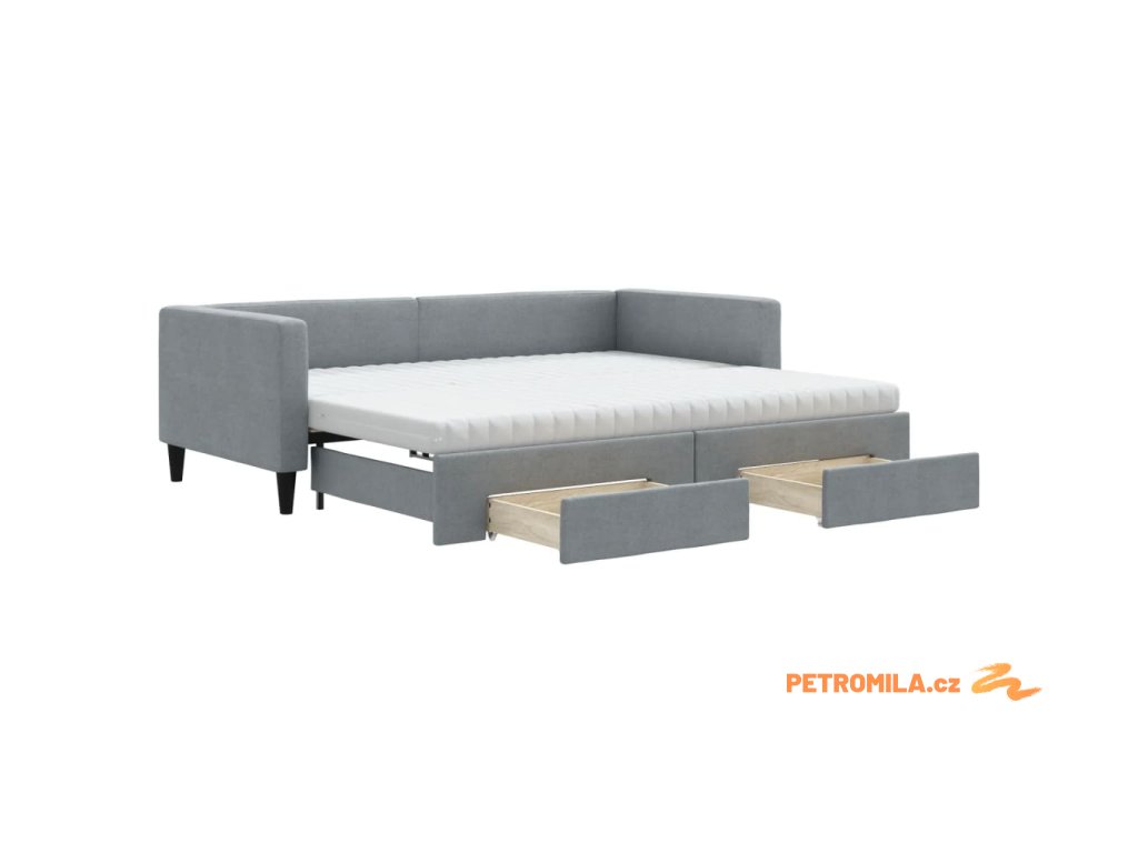 Válenda s přistýlkou a zásuvkami světle šedá 90 x 200 cm textil