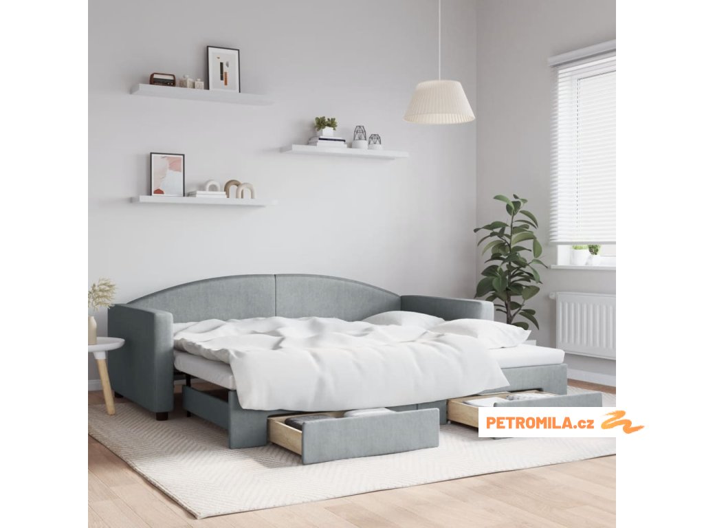 Válenda s přistýlkou a zásuvkami světle šedá 90 x 200 cm textil