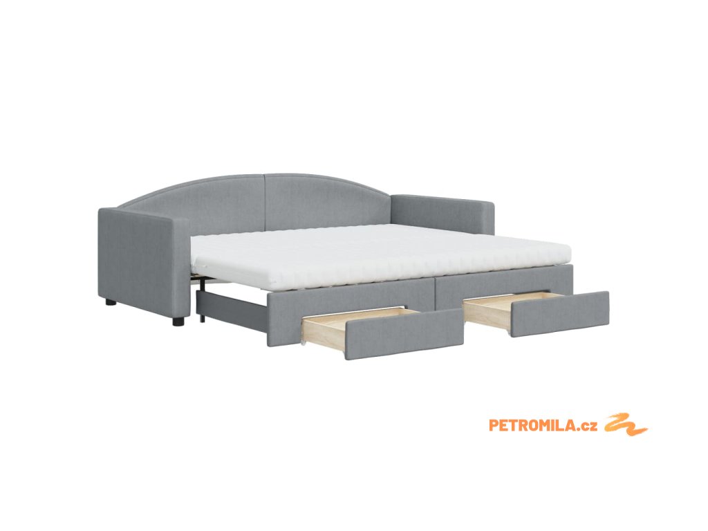 Válenda s přistýlkou a zásuvkami světle šedá 90 x 200 cm textil