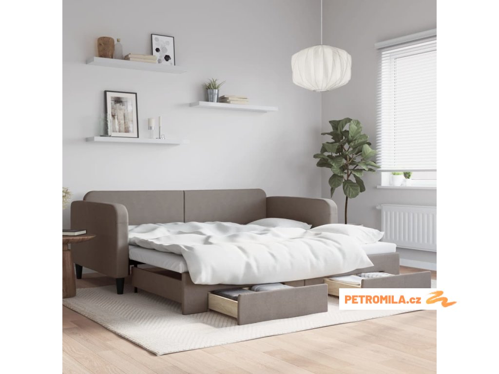 Válenda s přistýlkou a zásuvkami taupe 100 x 200 cm textil