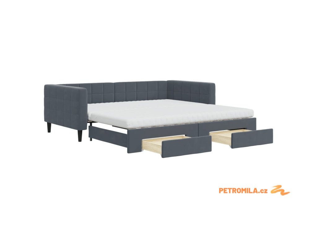 Válenda s přistýlkou a zásuvkami tmavě šedá 100 x 200 cm samet