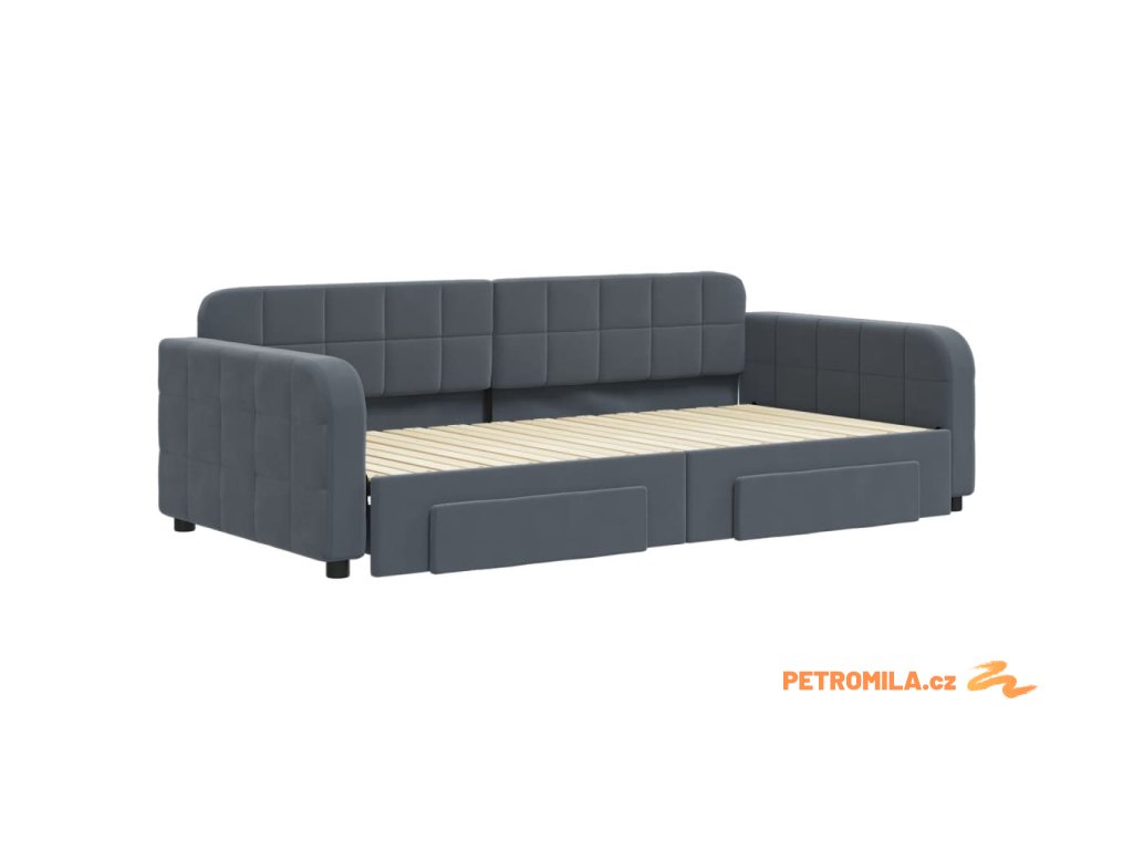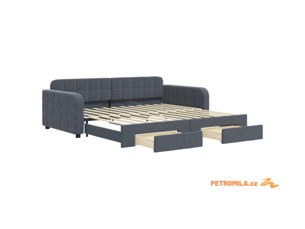 Válenda s přistýlkou a zásuvkami tmavě šedá 100 x 200 cm samet