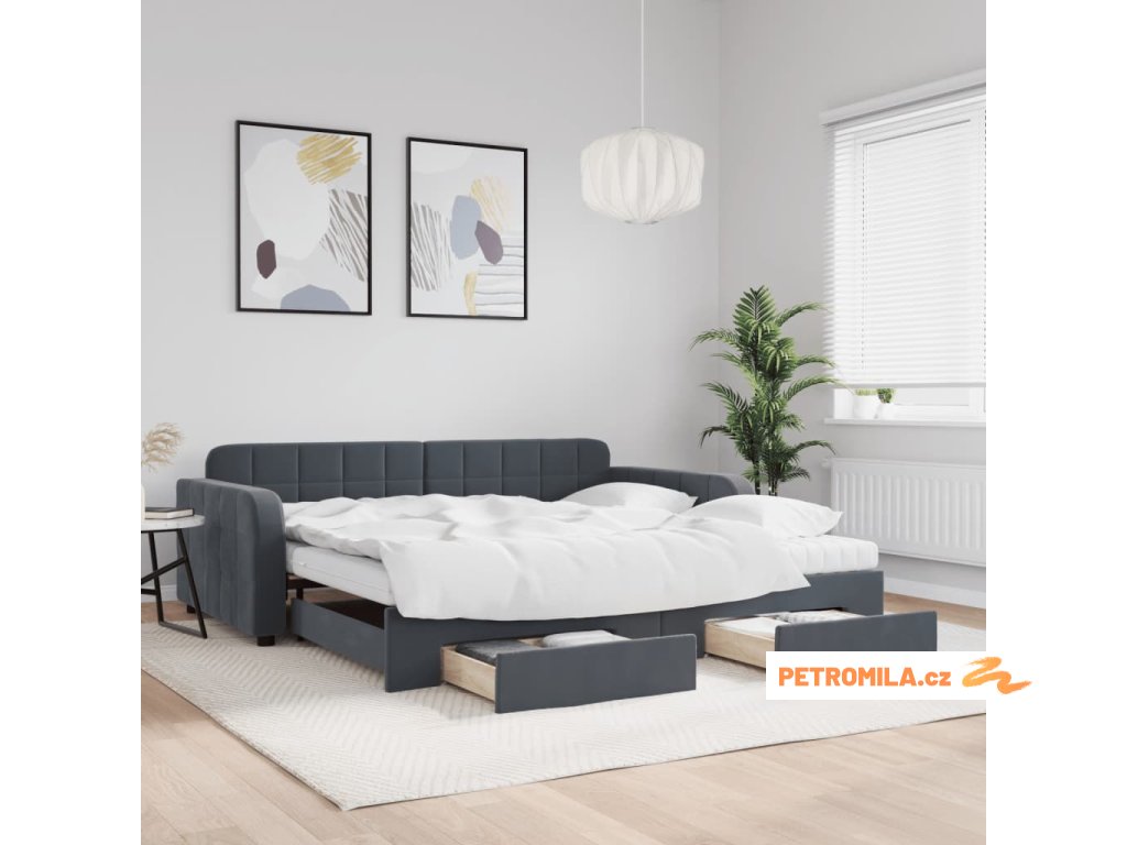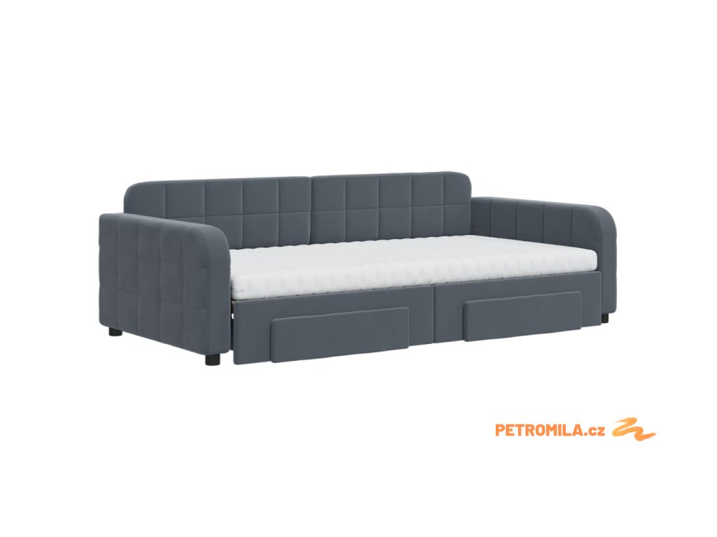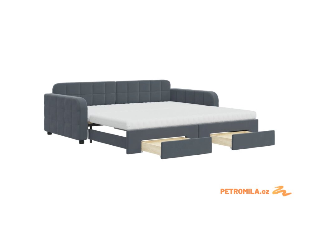 Válenda s přistýlkou a zásuvkami tmavě šedá 100 x 200 cm samet