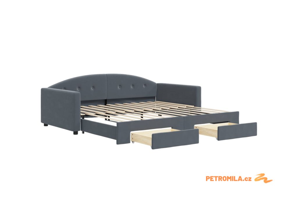 Válenda s přistýlkou a zásuvkami tmavě šedá 100 x 200 cm samet