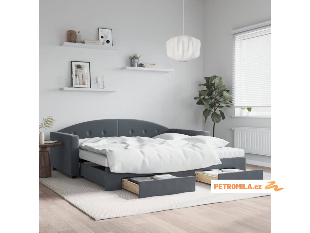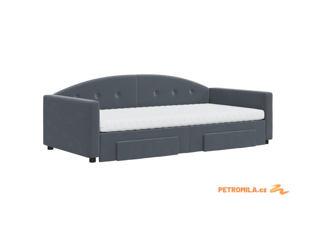 Válenda s přistýlkou a zásuvkami tmavě šedá 100 x 200 cm samet