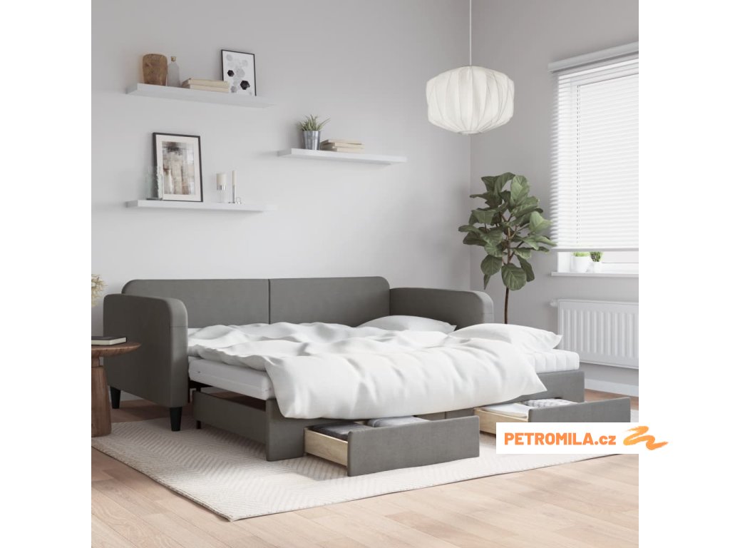 Válenda s přistýlkou a zásuvkami tmavě šedá 100 x 200 cm textil