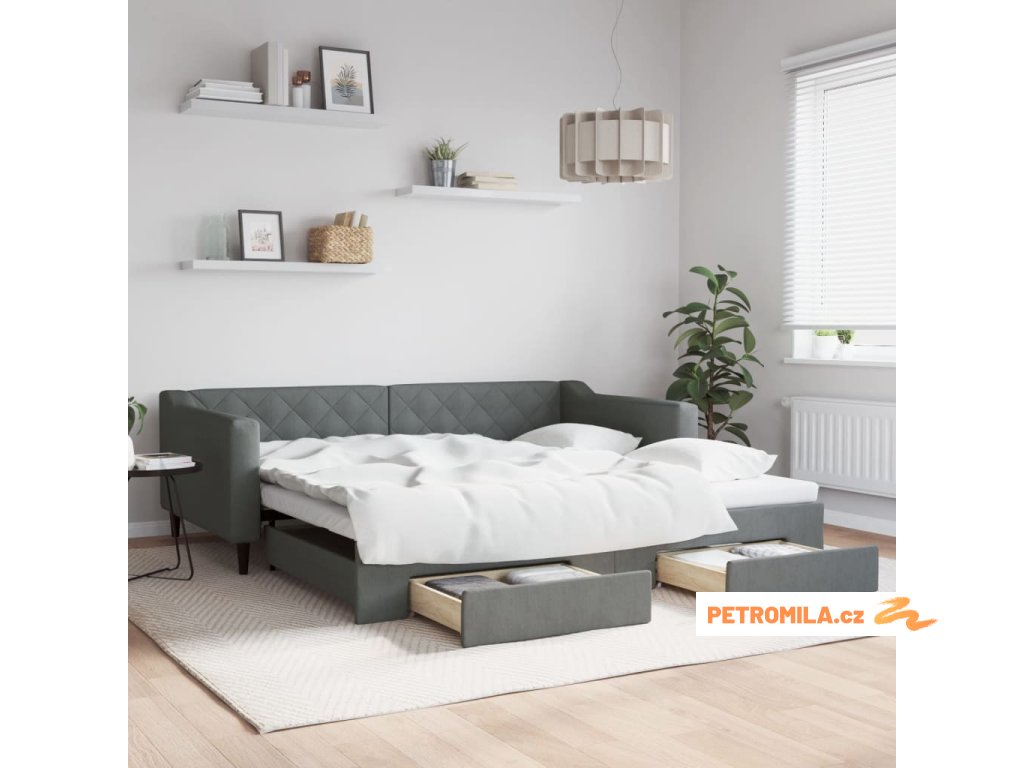 Válenda s přistýlkou a zásuvkami tmavě šedá 100 x 200 cm textil