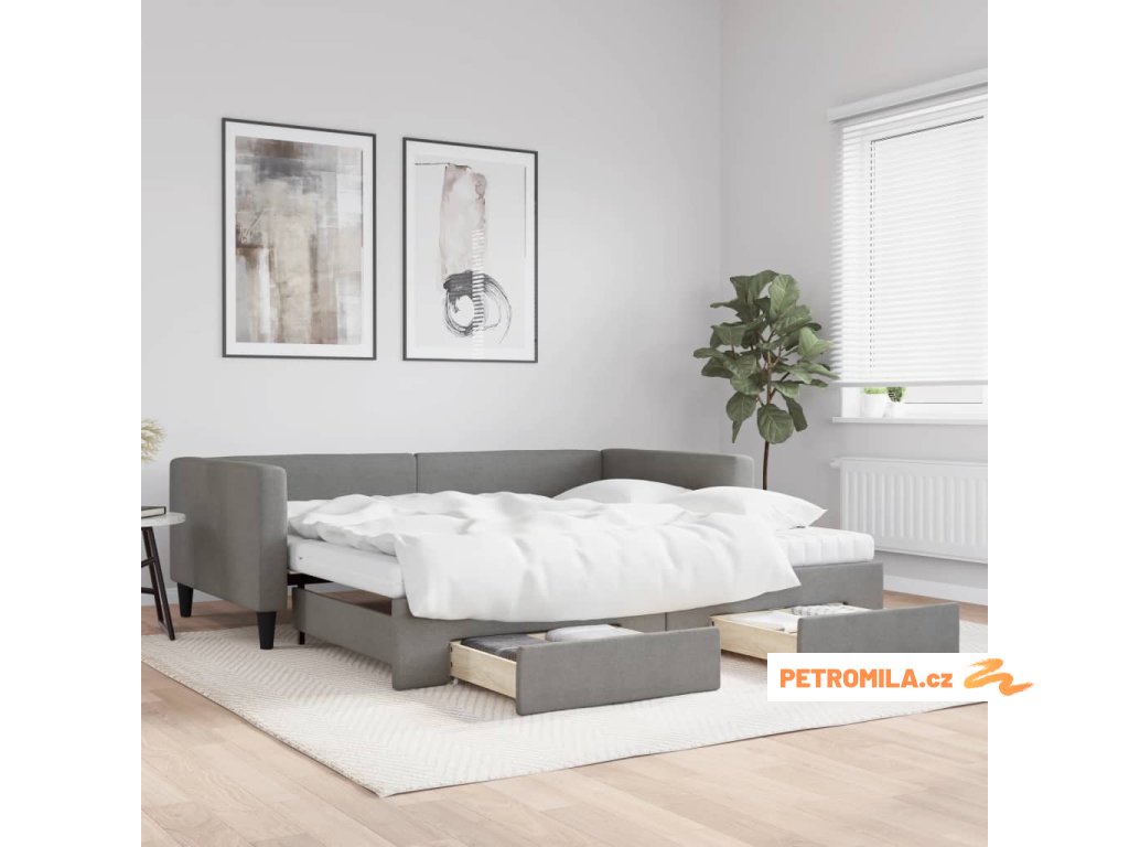 Válenda s přistýlkou a zásuvkami tmavě šedá 100 x 200 cm textil
