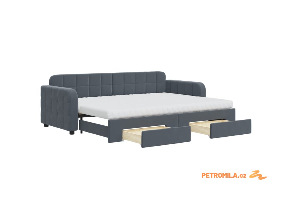 Válenda s přistýlkou a zásuvkami tmavě šedá 80 x 200 cm samet