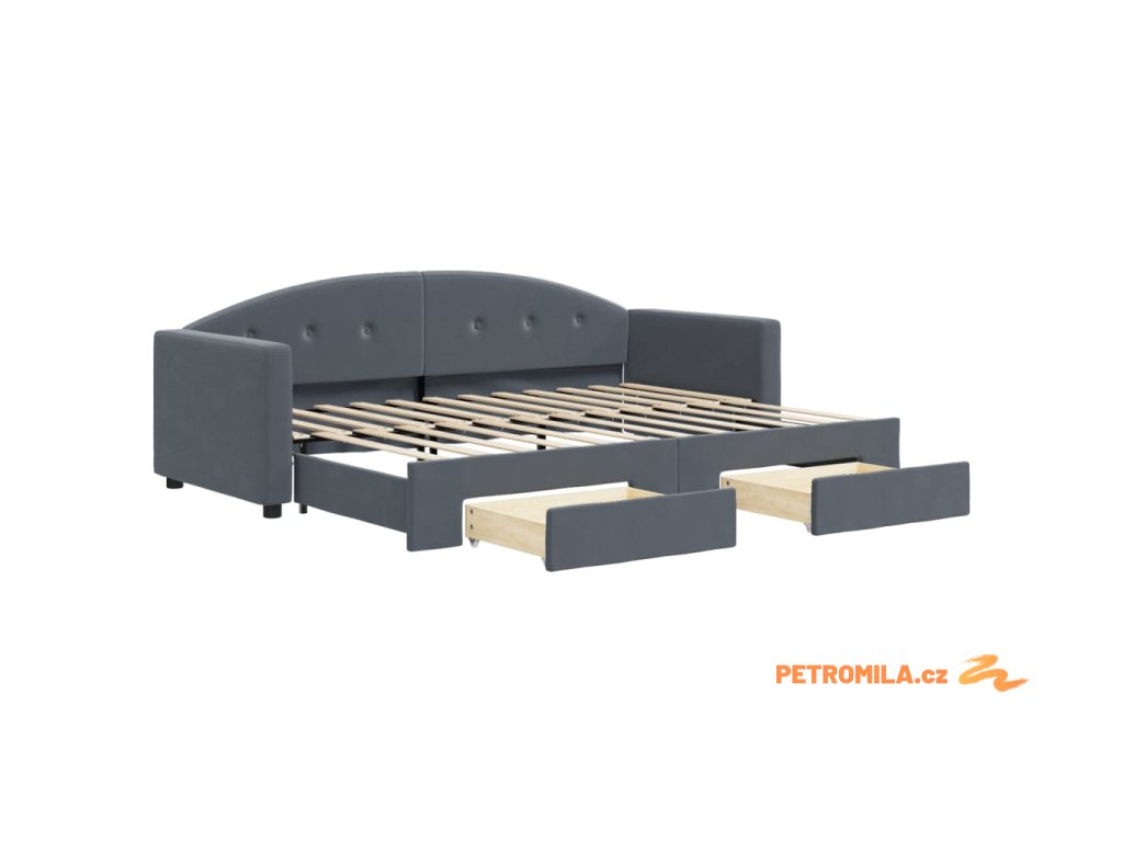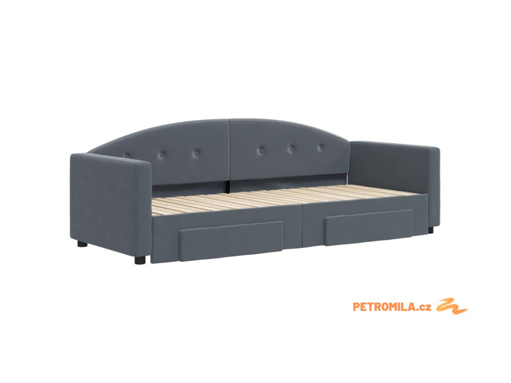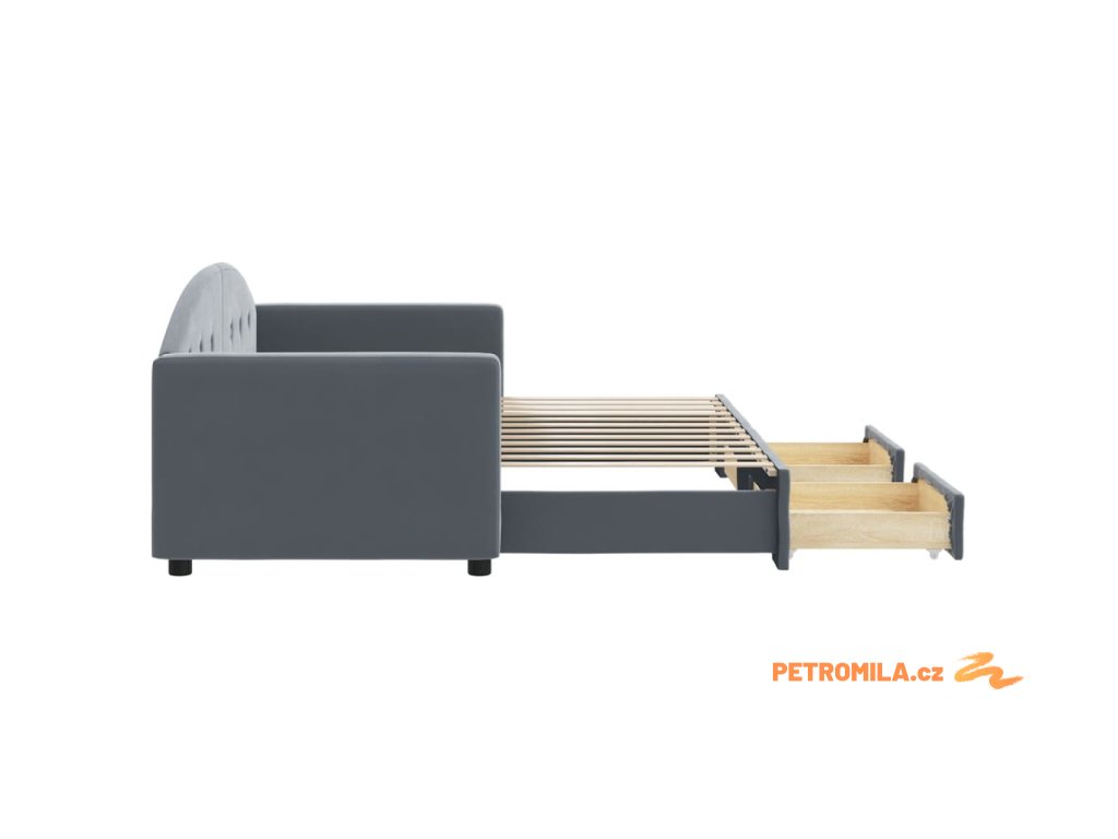 Válenda s přistýlkou a zásuvkami tmavě šedá 80 x 200 cm samet