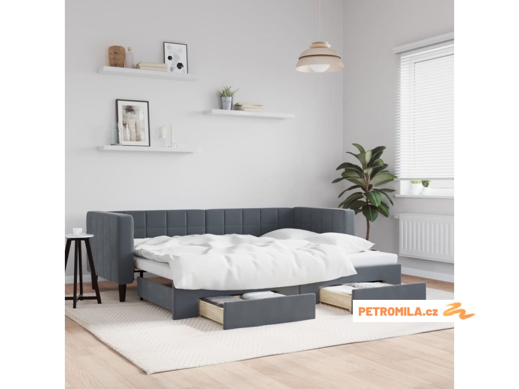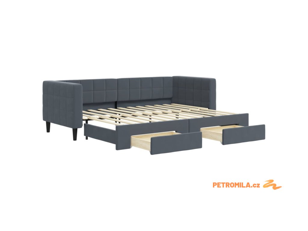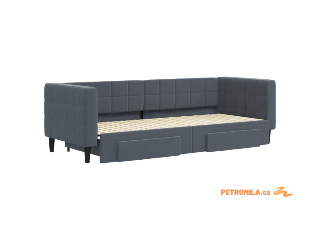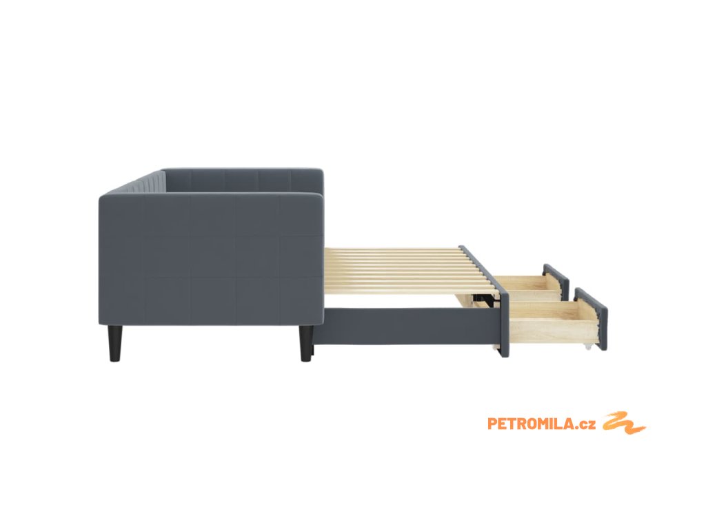 Válenda s přistýlkou a zásuvkami tmavě šedá 80 x 200 cm samet