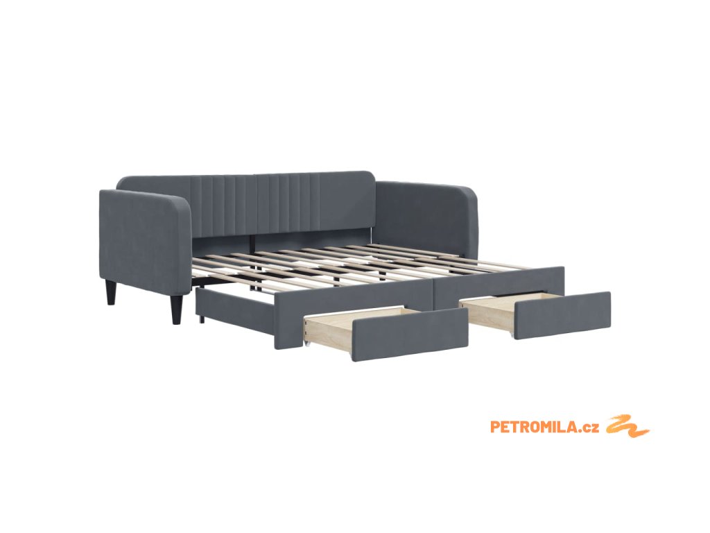 Válenda s přistýlkou a zásuvkami tmavě šedá 90 x 190 cm samet