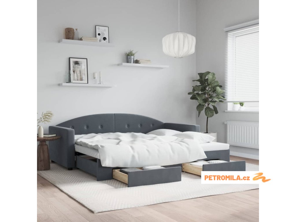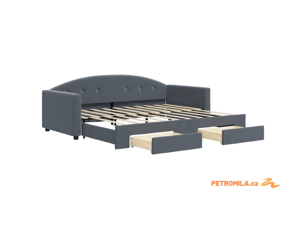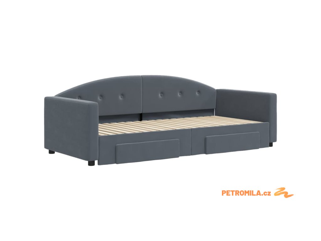 Válenda s přistýlkou a zásuvkami tmavě šedá 90 x 190 cm samet