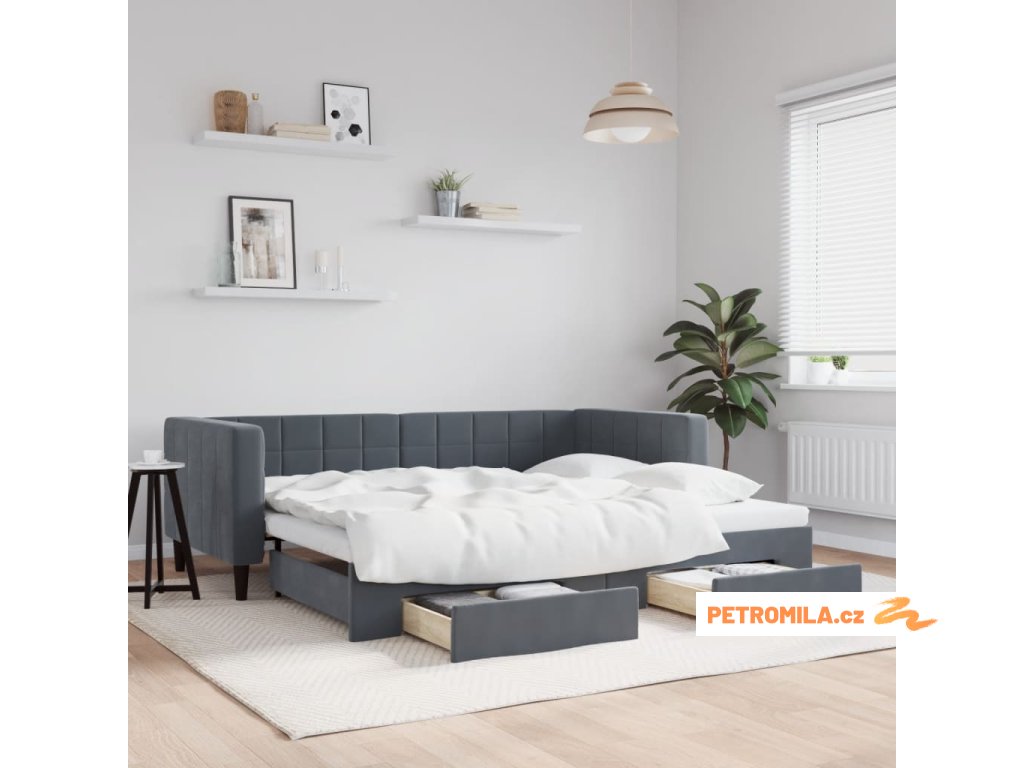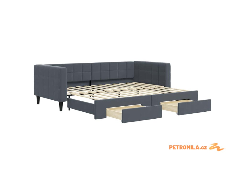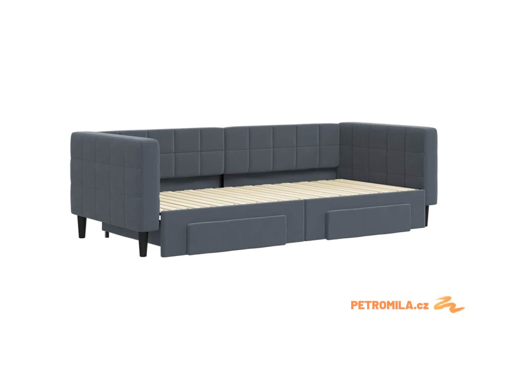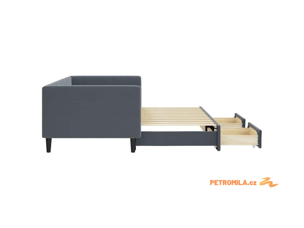 Válenda s přistýlkou a zásuvkami tmavě šedá 90 x 200 cm samet