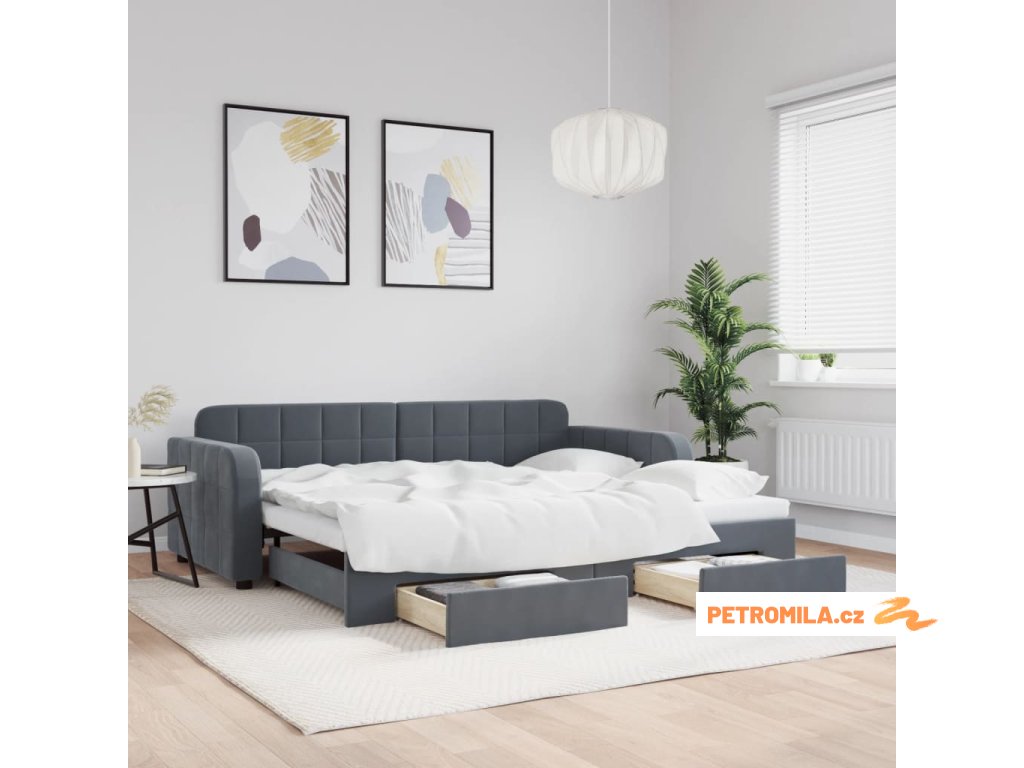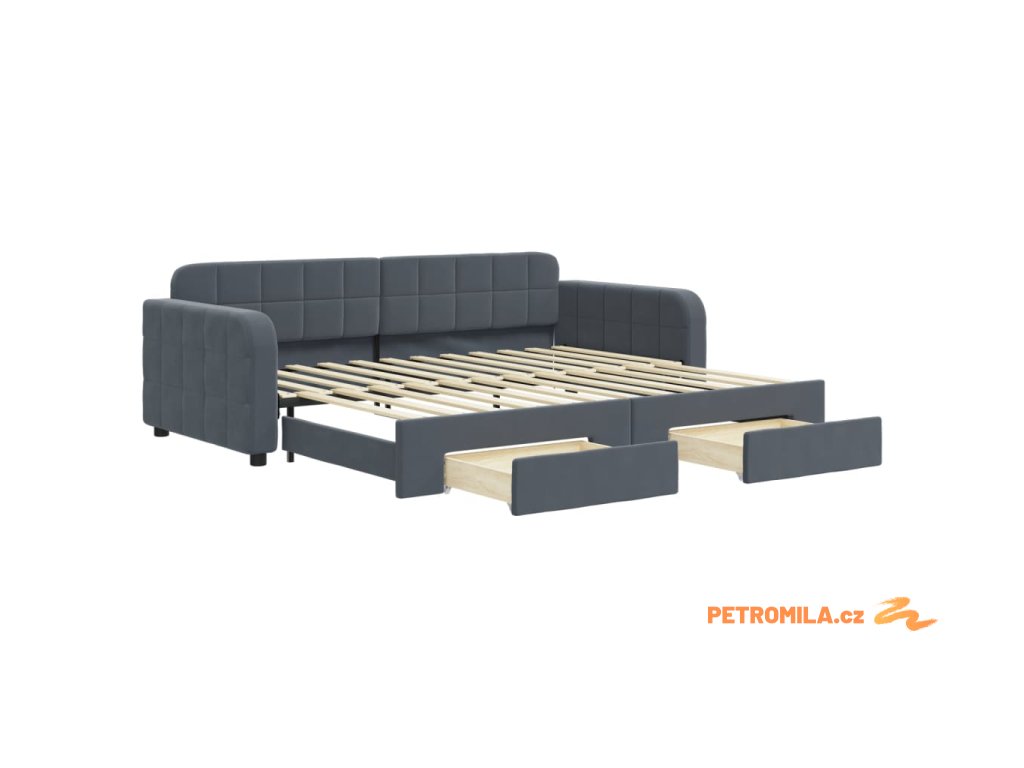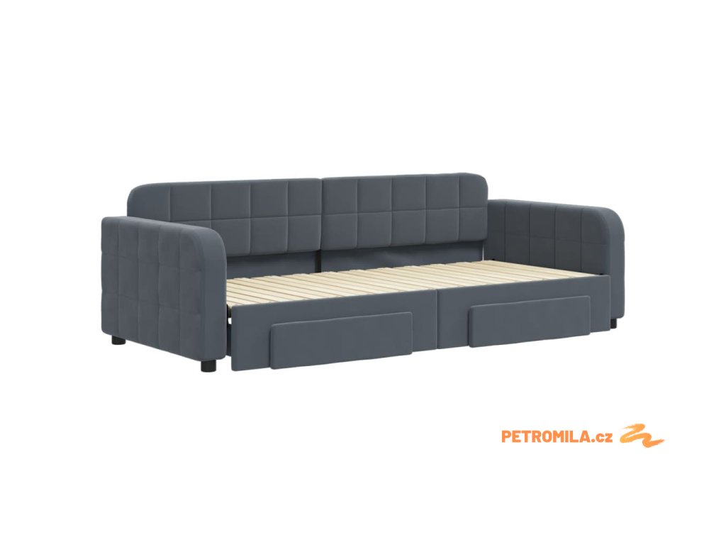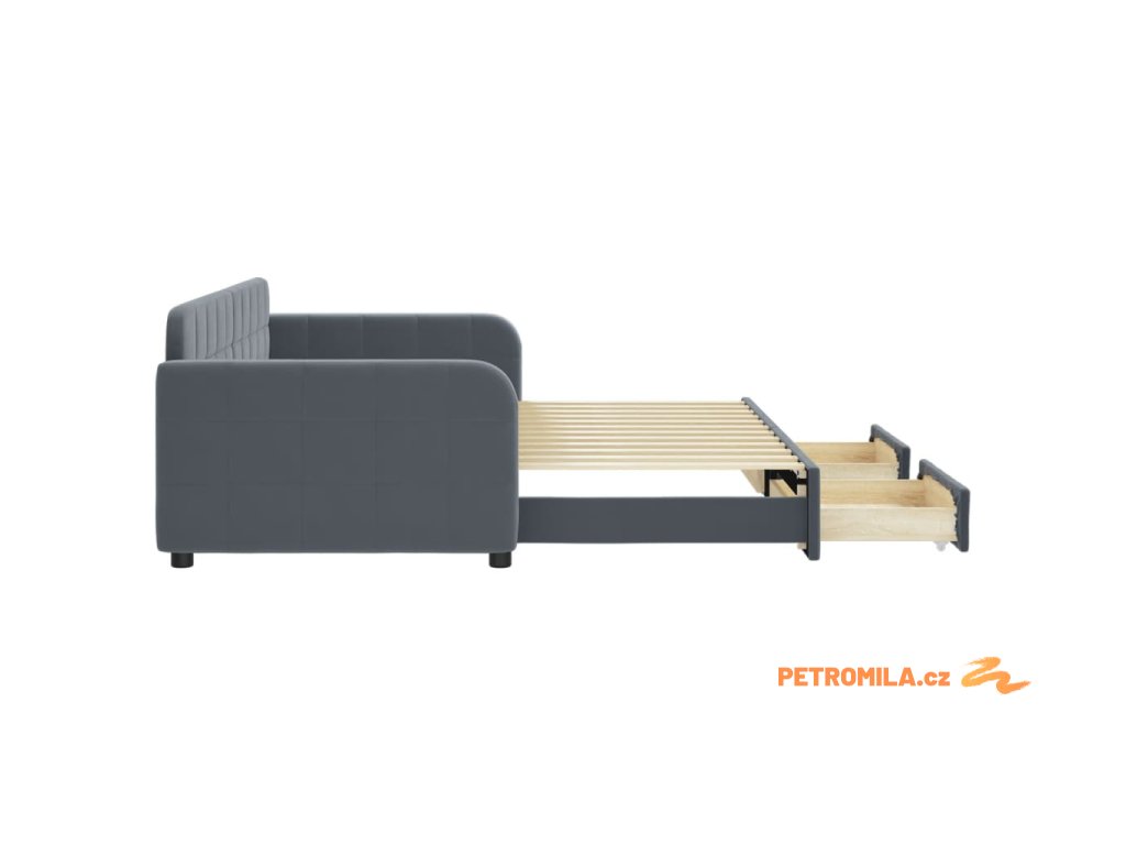 Válenda s přistýlkou a zásuvkami tmavě šedá 90 x 200 cm samet
