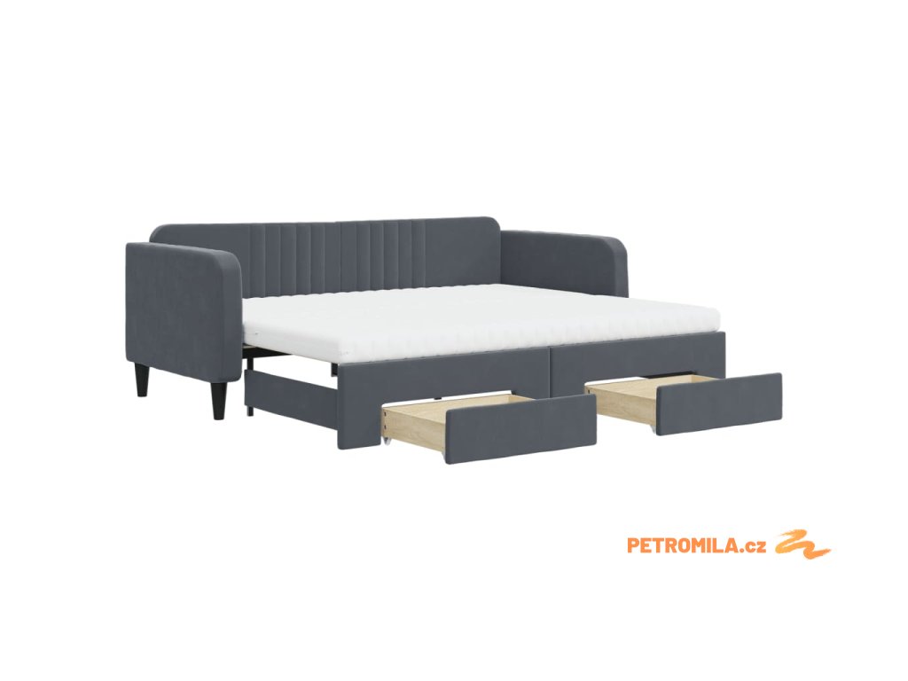 Válenda s přistýlkou a zásuvkami tmavě šedá 90 x 200 cm samet