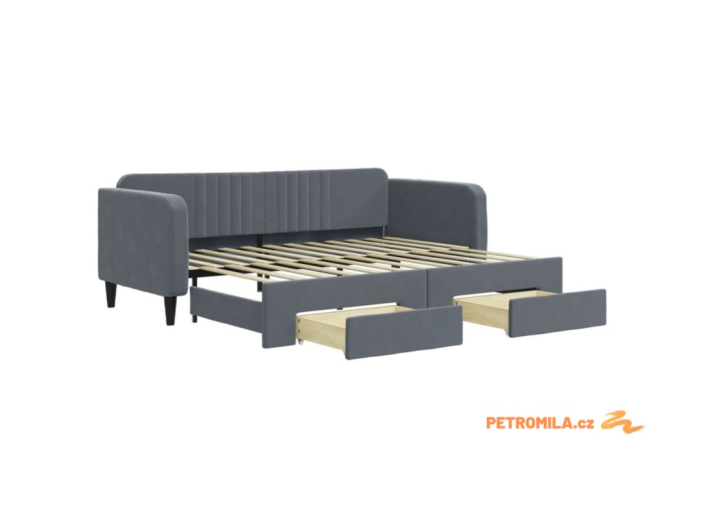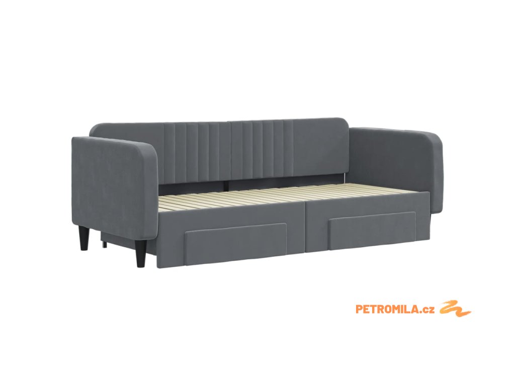 Válenda s přistýlkou a zásuvkami tmavě šedá 90 x 200 cm samet