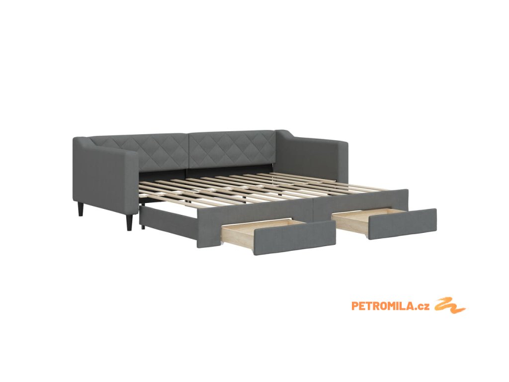 Válenda s přistýlkou a zásuvkami tmavě šedá 90 x 200 cm textil
