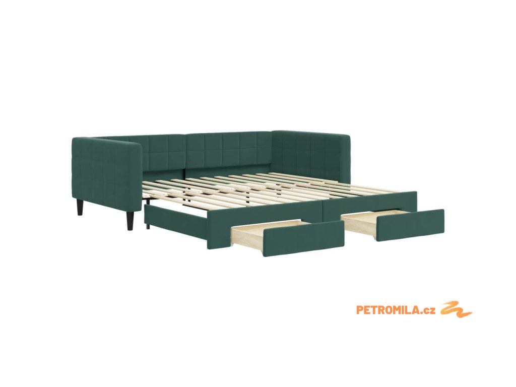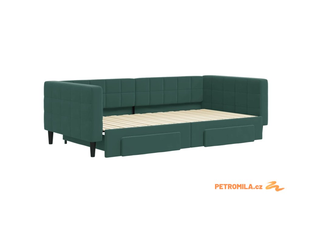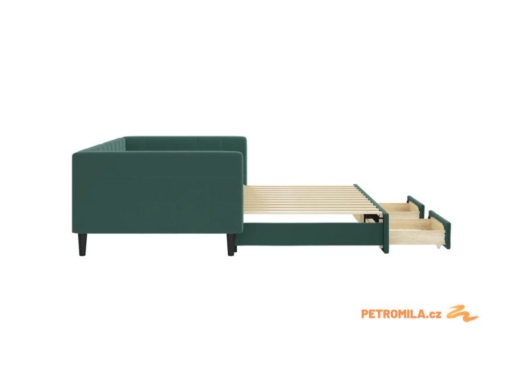 Válenda s přistýlkou a zásuvkami tmavě zelená 100x200 cm samet