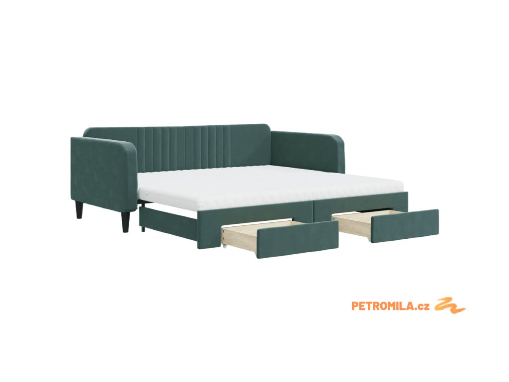 Válenda s přistýlkou a zásuvkami tmavě zelená 100x200 cm samet