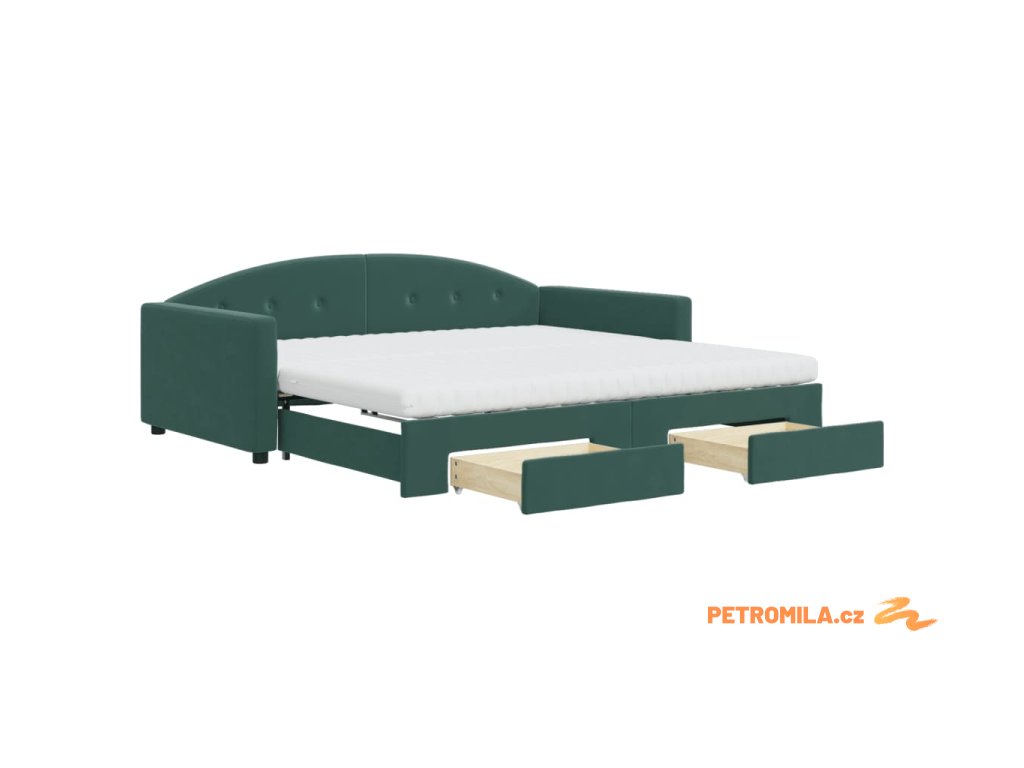 Válenda s přistýlkou a zásuvkami tmavě zelená 100x200 cm samet