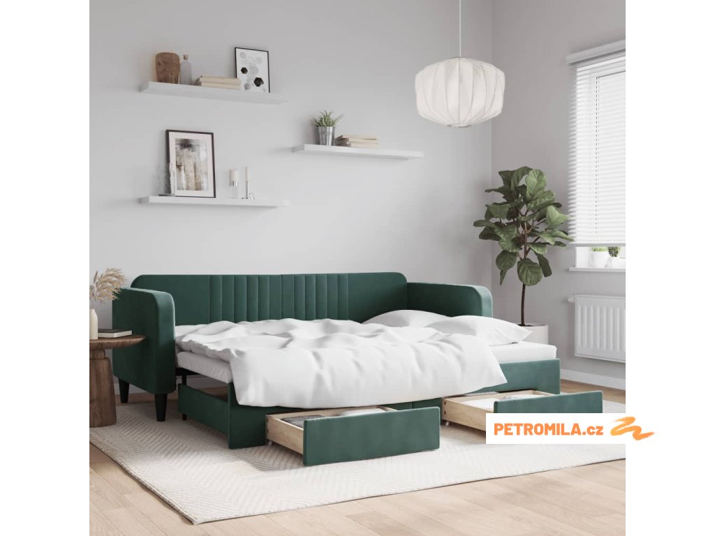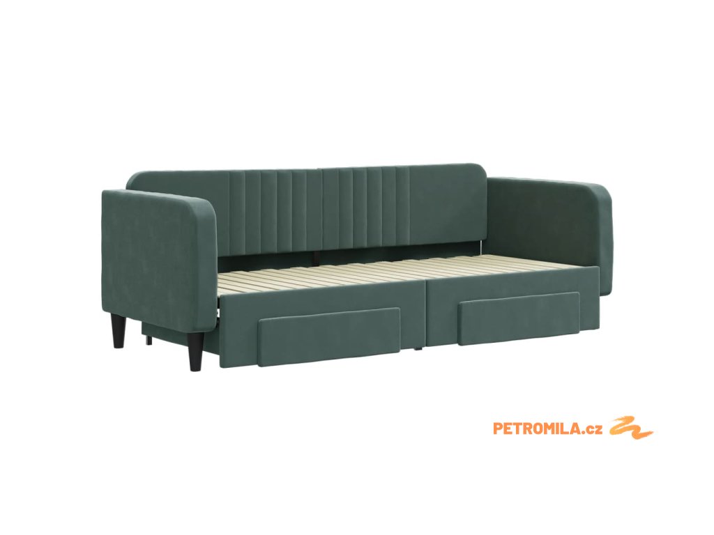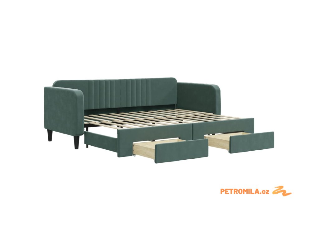 Válenda s přistýlkou a zásuvkami tmavě zelená 80 x 200 cm samet