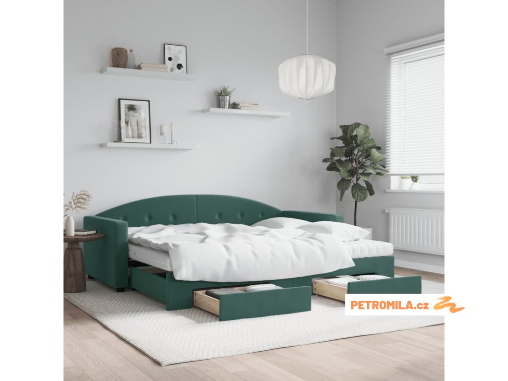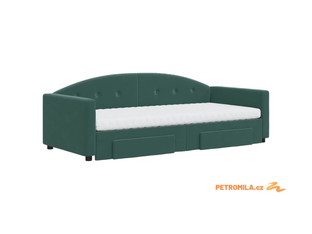 Válenda s přistýlkou a zásuvkami tmavě zelená 90 x 200 cm samet