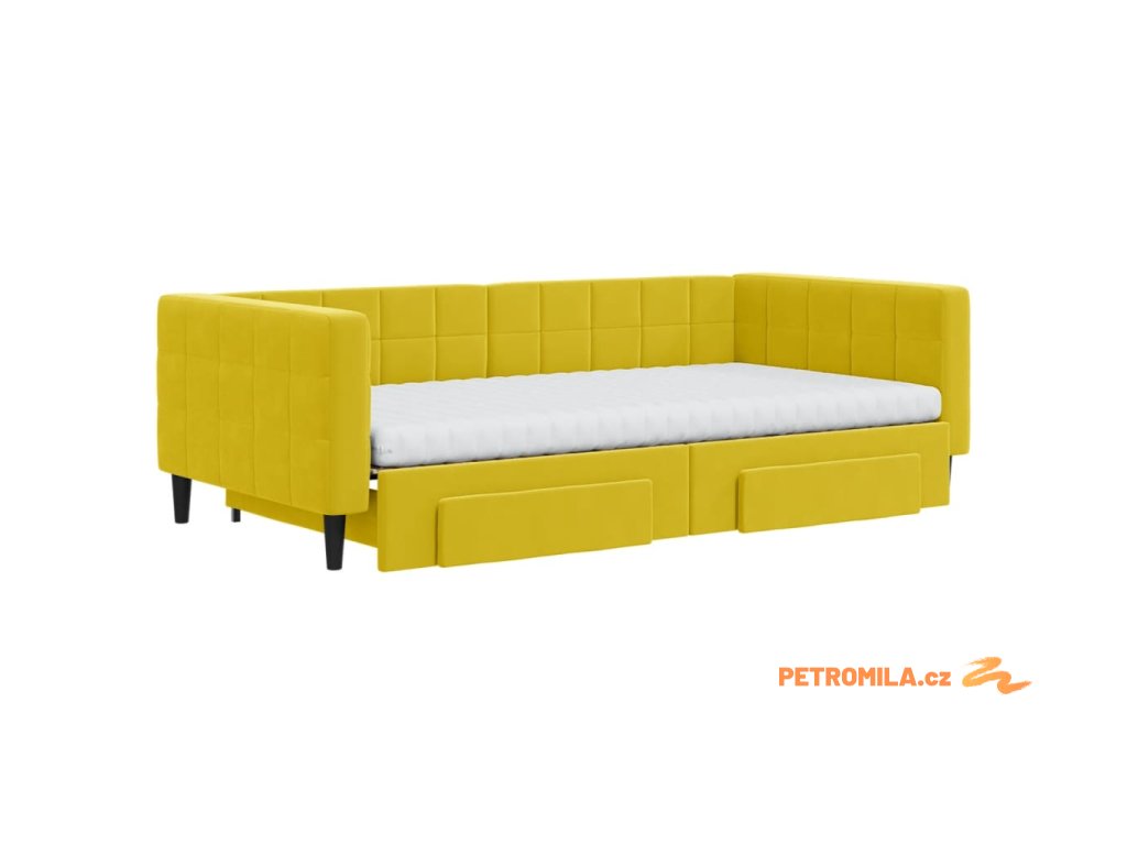 Válenda s přistýlkou a zásuvkami žlutá 100 x 200 cm samet
