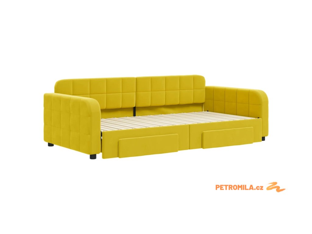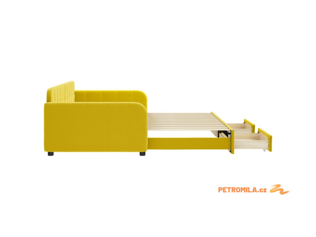 Válenda s přistýlkou a zásuvkami žlutá 100 x 200 cm samet