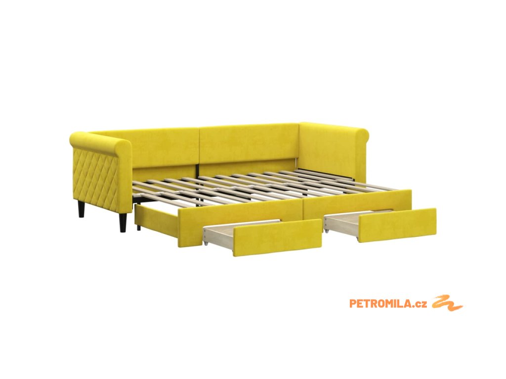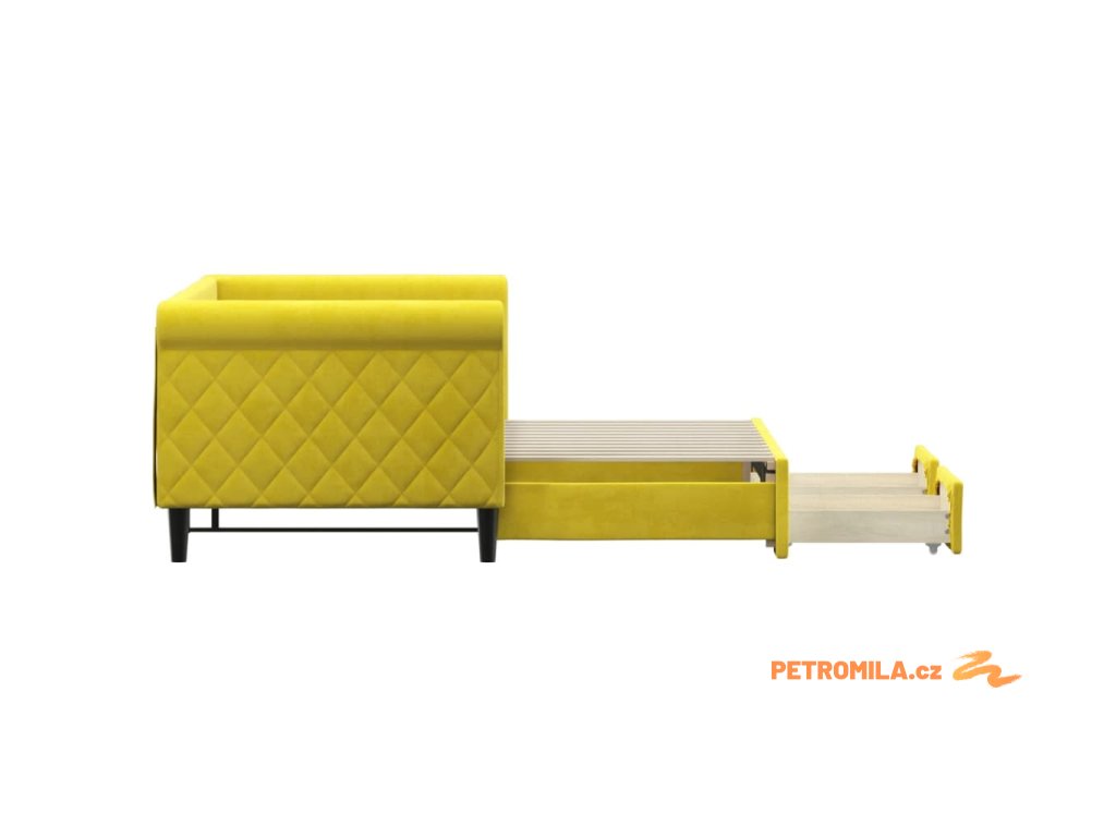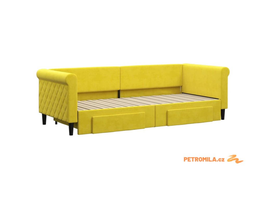 Válenda s přistýlkou a zásuvkami žlutá 80 x 200 cm samet