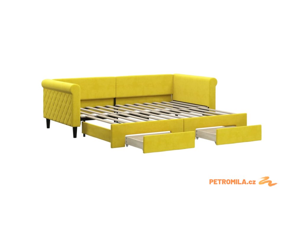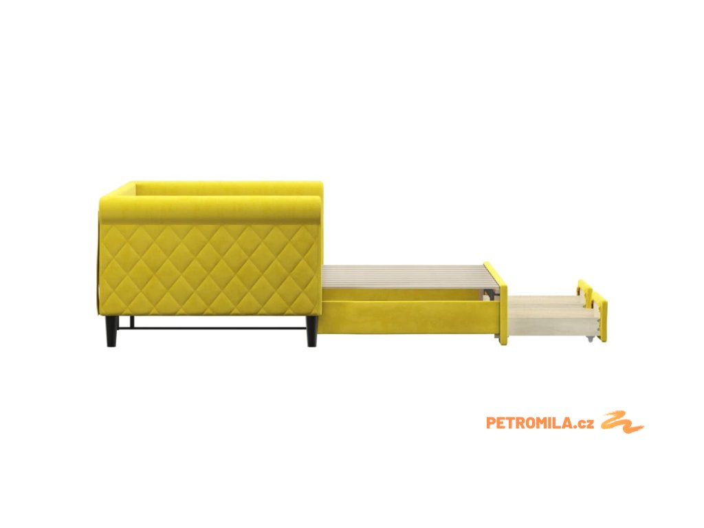 Válenda s přistýlkou a zásuvkami žlutá 90 x 200 cm samet