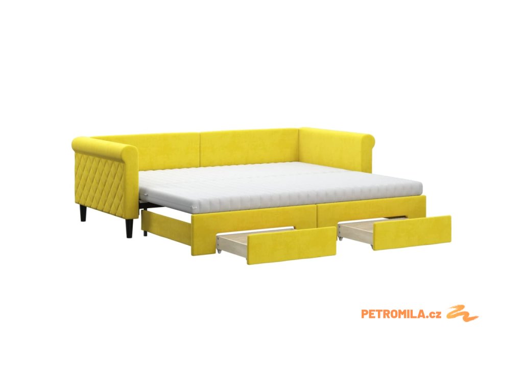 Válenda s přistýlkou a zásuvkami žlutá 90 x 200 cm samet