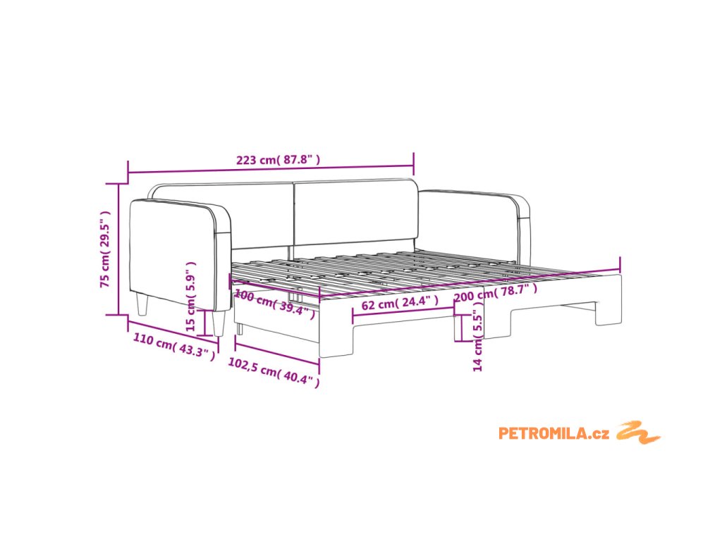- Rozměry (nevysunuté): 223 x 110 x 75 cm (D x Š x V)