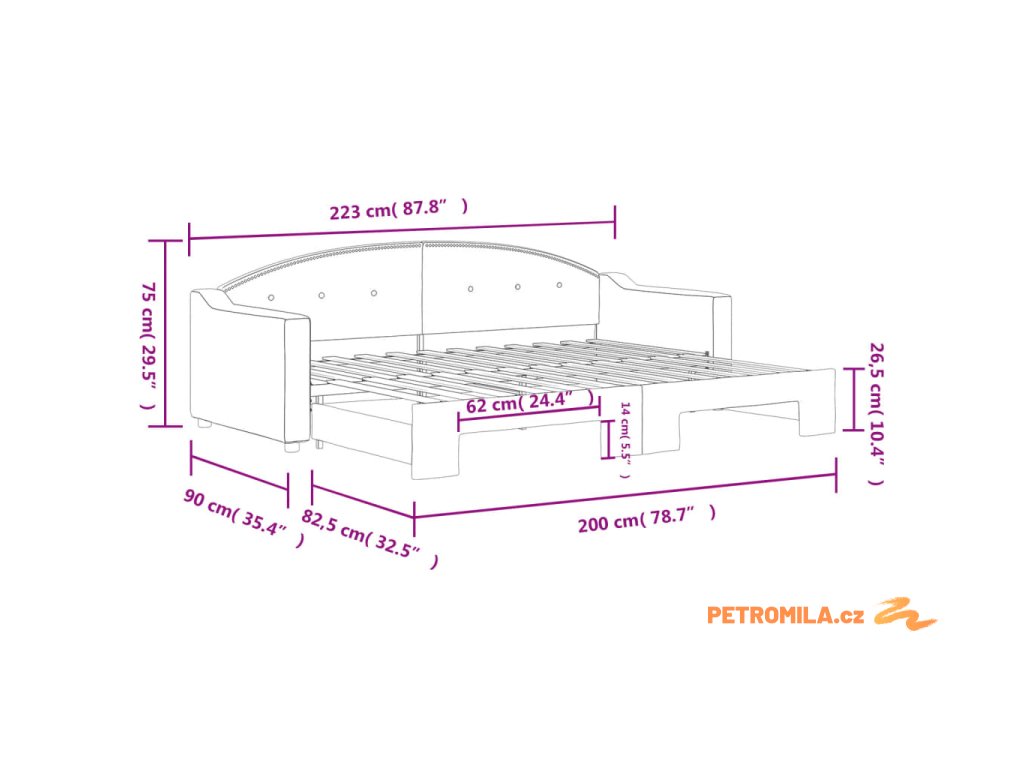 - Rozměry (nevysunuté): 223 x 90 x 75 cm (D x Š x V)